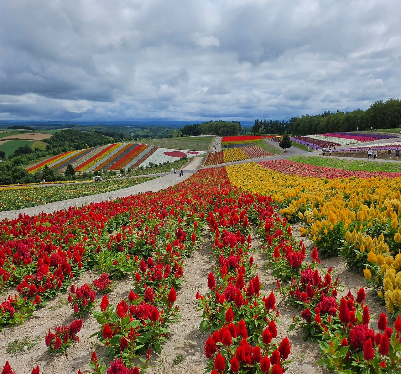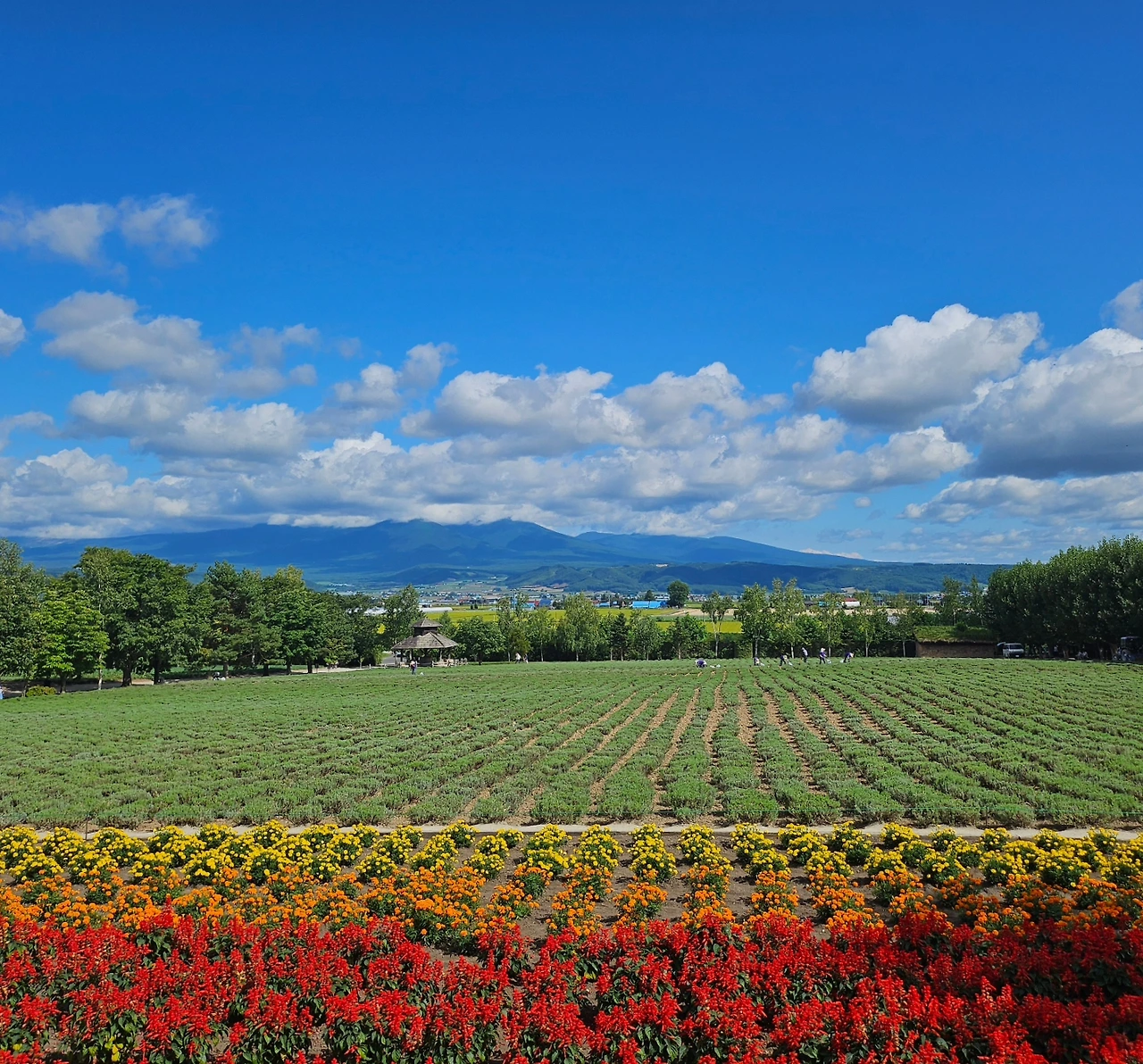 팜 도미타에 도착하자 거짓말처럼 날씨가 맑아졌다. 푸른 하늘 아래에 형형색색의 꽃들과 나무들이 어우러져 있었고, 주변에는 라벤더 밭이 끝없이 펼쳐져 있었다. 팜 도미타는 정말 어디에서 봐도 그림 같은 풍경이었는데, 그중에서도 2층 전망대에서 내려다본 모습이 압권이었다.