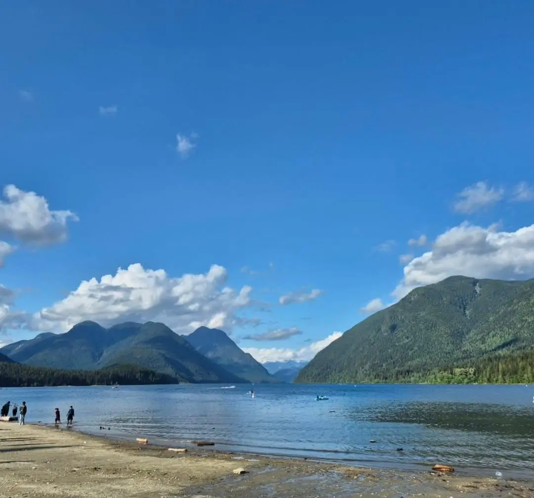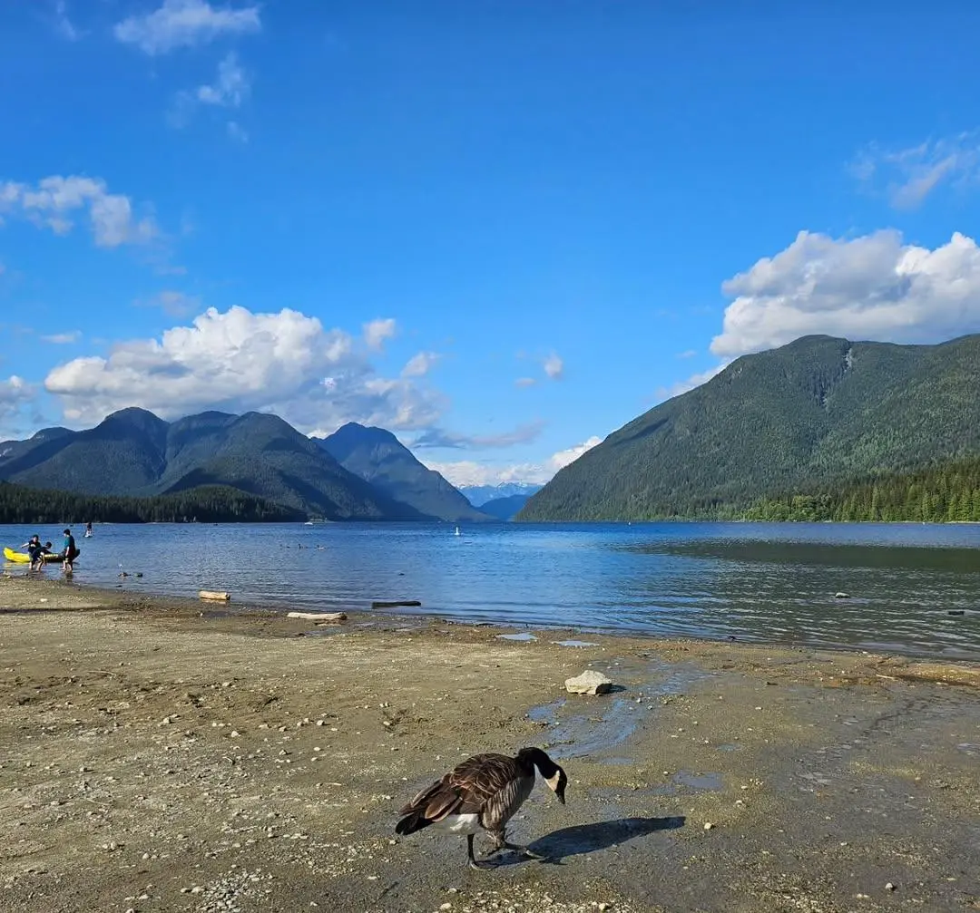 하산 후에는 팀홀튼(Tim Hortons)에 들러 커피와 도넛을 테이크아웃했다. 곧바로 골든 이어스 주립공원(Golden Ears Provincial Park)에 위치한 알루엣 호수(Alouette Lake)로 향했다. 맑은 호수와 그 주변을 둘러싼 산들이 조화를 이루고, 햇살이 물 위에 반사되어 한적하고 시원하며 아름다운 풍경을 만들어냈다.