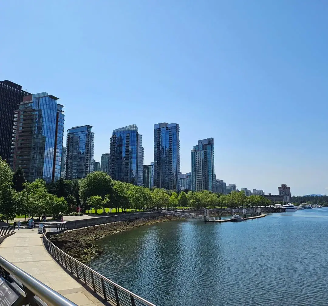 이후에는 밴쿠버의 대표적인 랜드마크인 캐나다 플레이스(Canada Place)를 방문했다. 바다를 배경으로 우아하게 펼쳐진 하얀 돛 모양의 건축물과 알래스카로 향하는 거대한 크루즈선이 정박해 있는 장면이 인상 깊었다. 마지막으로 스탠리 파크(Stanley Park)까지 걸어가 해변을 따라 이어진 산책로를 걸으며 여유로운 시간을 보냈다. 도심 속에서 자연을 온전히 만끽할 수 있는 특별한 공간이었다. 밴쿠버가 세계에서 가장 살기 좋은 도시 중 하나라는 말이 절로 떠올랐다.