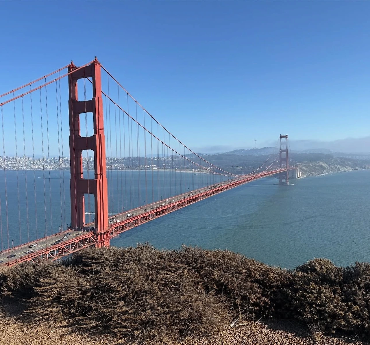 이후 우버를 타고 금문교(Golden Gate Bridge)를 가장 잘 볼 수 있는 명소인 배터리 스펜서(Battery Spencer)로 이동했다. 고도가 상당히 높은 곳이라 찬 바람이 강하게 불었지만, 금문교는 물론 앨커트래즈섬(Alcatraz Island)과 샌프란시스코 시내까지 한눈에 내려다보였다. 해가 바다 쪽으로 지고 있었는데, 석양을 등지고 한참 동안 금문교의 풍경을 감상했다.