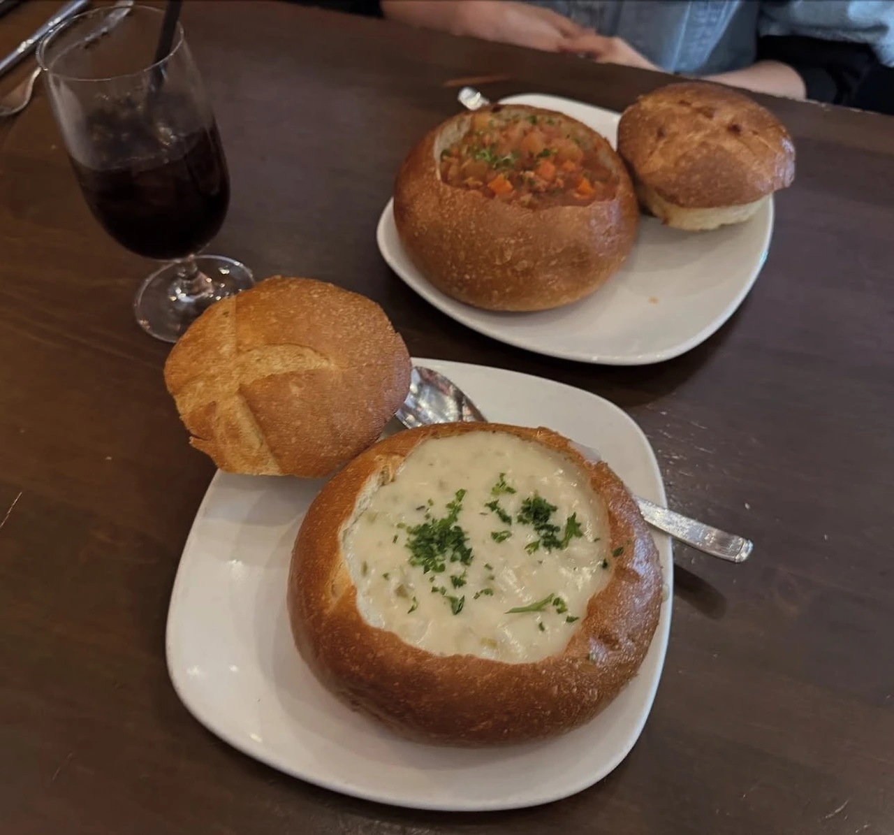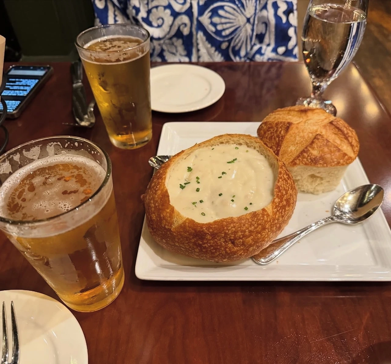 한참을 걸은 뒤, 저녁에도 샌프란시스코의 명물인 부댕 베이커리(Boudin Bakery)를 다시 찾았다. 비교적 늦은 시각임에도 손님들이 많아 이곳의 인기를 실감할 수 있었다. 식전빵으로는 부댕의 대표 메뉴인 사워도우(Sourdough) 빵이 제공되었다. 클램 차우더 수프, 페퍼로니 피자, 해산물 파스타를 맥주와 함께 맛보며 하루를 마무리했다. 하루 종일 풍성한 경험과 맛있는 음식으로 가득했던, 기억에 오래 남을 하루였다.