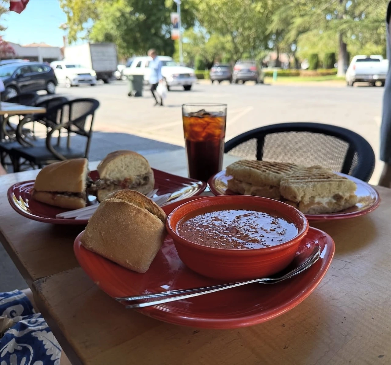 점심은 소노마밸리에서 먹었다. 전반적으로 동네는 한적했고, 점심시간임에도 문을 열지 않은 가게들이 많았다. 근처 카페에 들러 미국식 샌드위치와 파니니를 시켰는데, 한국에서보다 빵이 훨씬 두툼해 인상적이었다. 날씨가 좋아 야외 테이블에 앉아 한참을 이야기 나누며 여유를 즐겼다.