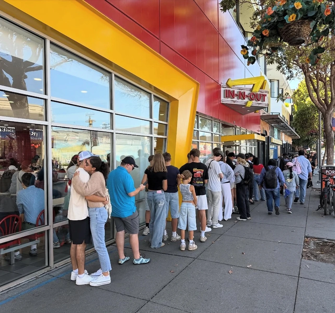 짐을 풀고 호텔 근처를 둘러보던 중, 캘리포니아의 유명 햄버거 체인인 인앤아웃(In-N-Out)을 발견했다. 점심시간이 한참 지났음에도 불구하고 긴 줄이 늘어서 있었다. 시차 때문인지 별로 배는 고프지 않았지만, 줄을 보니 괜히 궁금해져 먹어보기로 했다. 주문도 쉽지 않았고, 자리를 잡는 건 더 어려웠다. 겨우 자리를 잡고 햄버거를 먹어보니, 한국에서 먹던 햄버거보다 다소 퍽퍽한 느낌이었고, 감자튀김은 조금 짠 편이었다.
