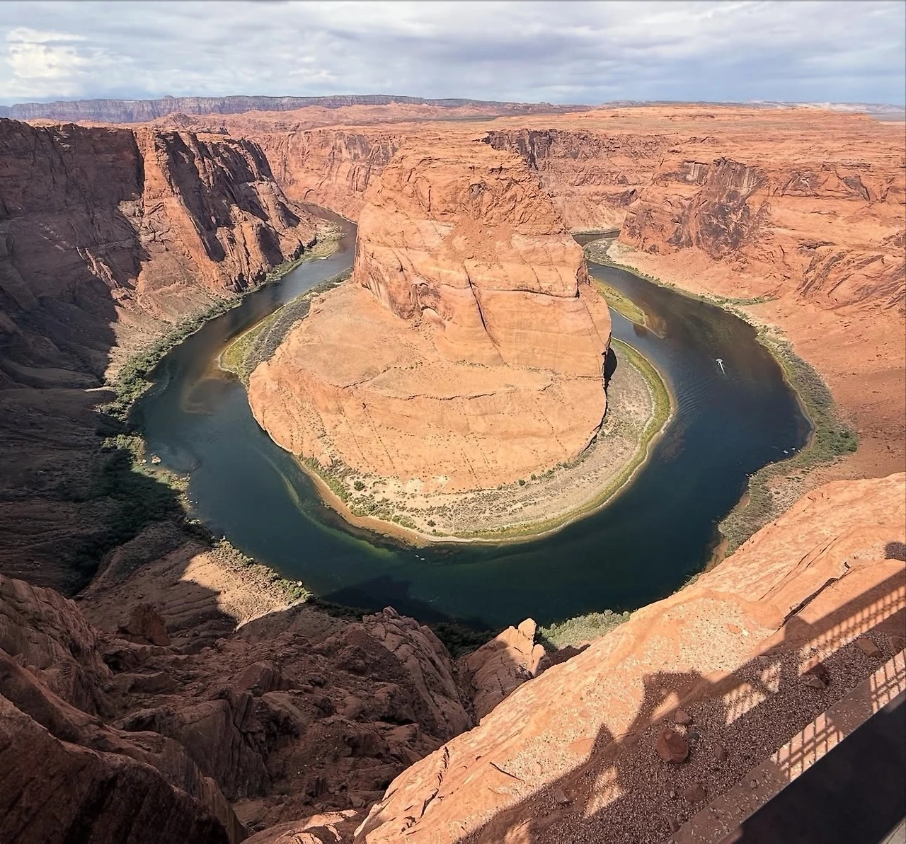 이후 방문한 호스슈 벤드(Horseshoe Bend)는 그 이름처럼 말발굽 모양으로 휘어진 강의 곡선이 인상적이었다. 붉은 바위 절벽 사이로 깊고 검푸른 강물이 U자형으로 흐르는 풍경은, 상상조차 하기 어려운 자연의 예술품 같았다. 안전펜스도 없는 절벽 끝에 서서 아래를 내려다보는 순간, 다리가 살짝 떨릴 정도였다. 동시에 자연의 깊이에 마음이 깊이 빠져들었다.