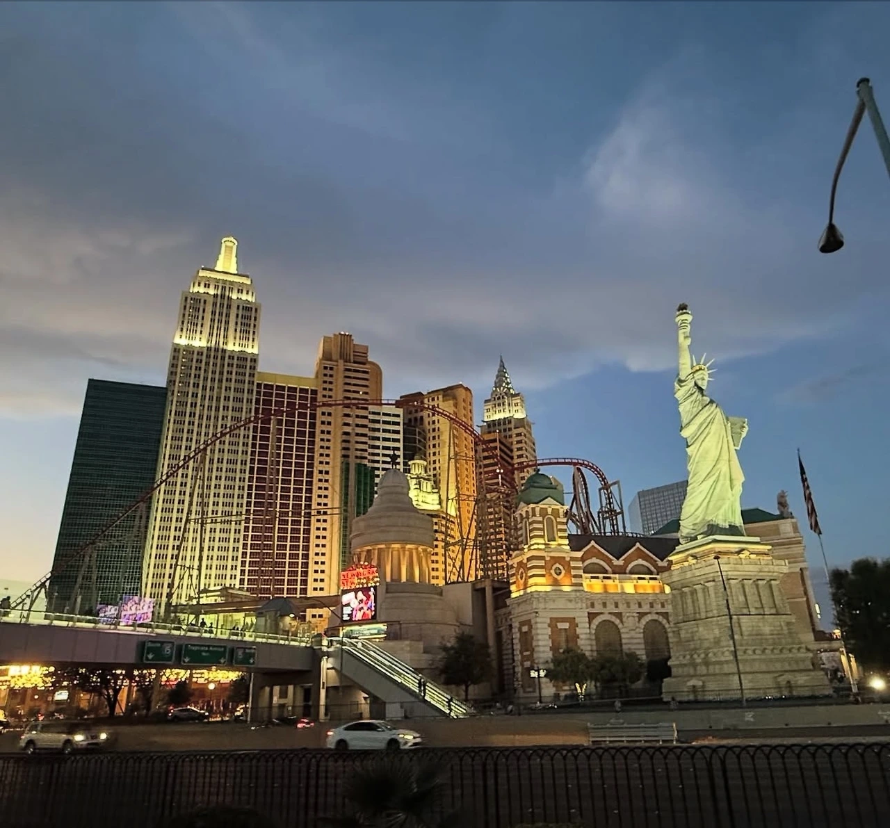 웰컴 사인에서부터 더 스트립(The Strip)을 따라 걸으며 도시를 탐방하기 시작했다. 맨덜레이 베이(Mandalay Bay), 룩소(Luxor), 엑스칼리버(Excalibur) 등 개성 있는 외형의 호텔들을 지나며 감탄했고, 뉴욕뉴욕(New York New York)에서는 아찔한 롤러코스터 'The Big Apple Coaster'도 타보았다. 건물 사이사이를 아슬아슬하게 누비는 열차는 오래된 듯하면서도 짜릿한 재미가 있었다.