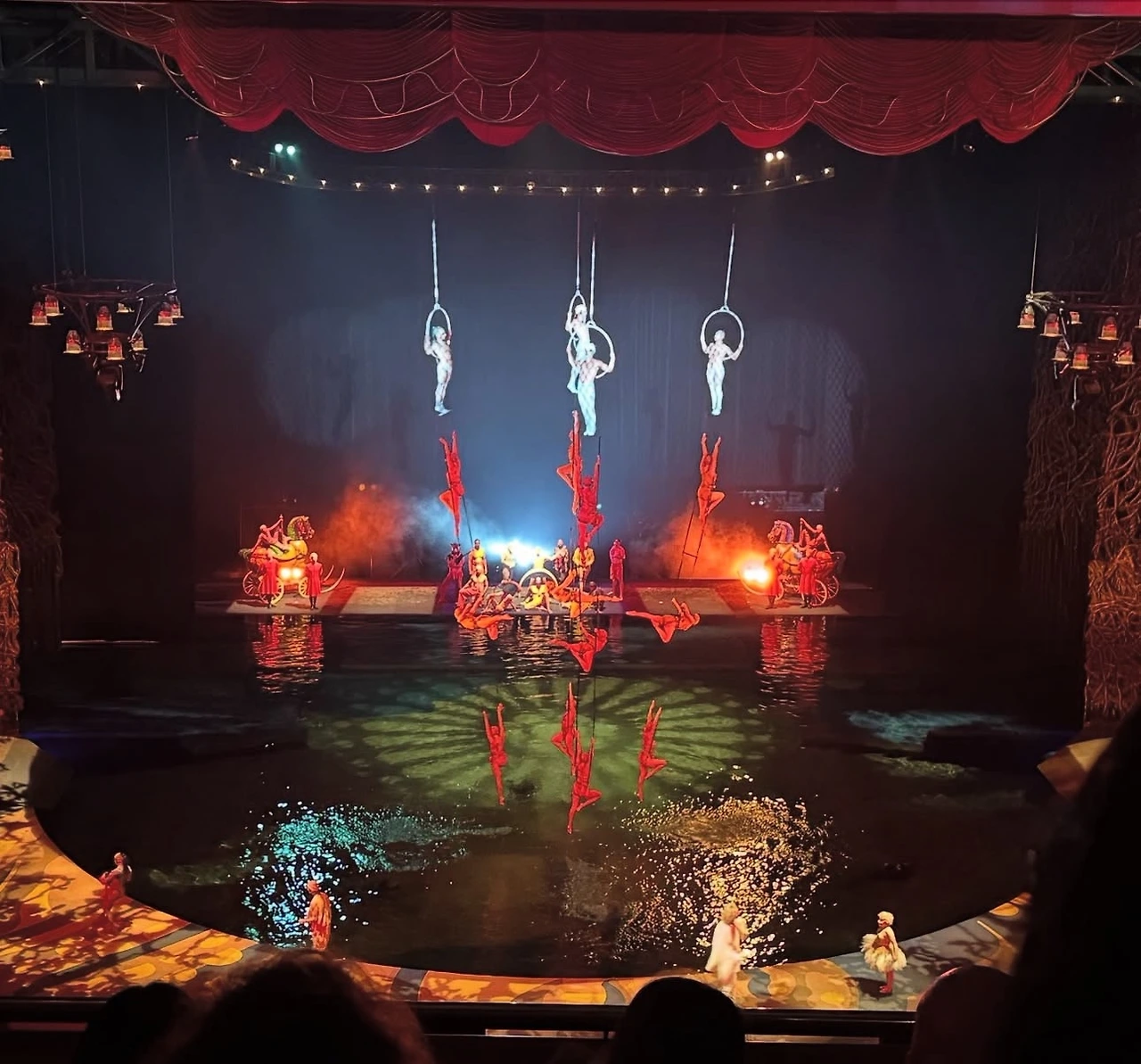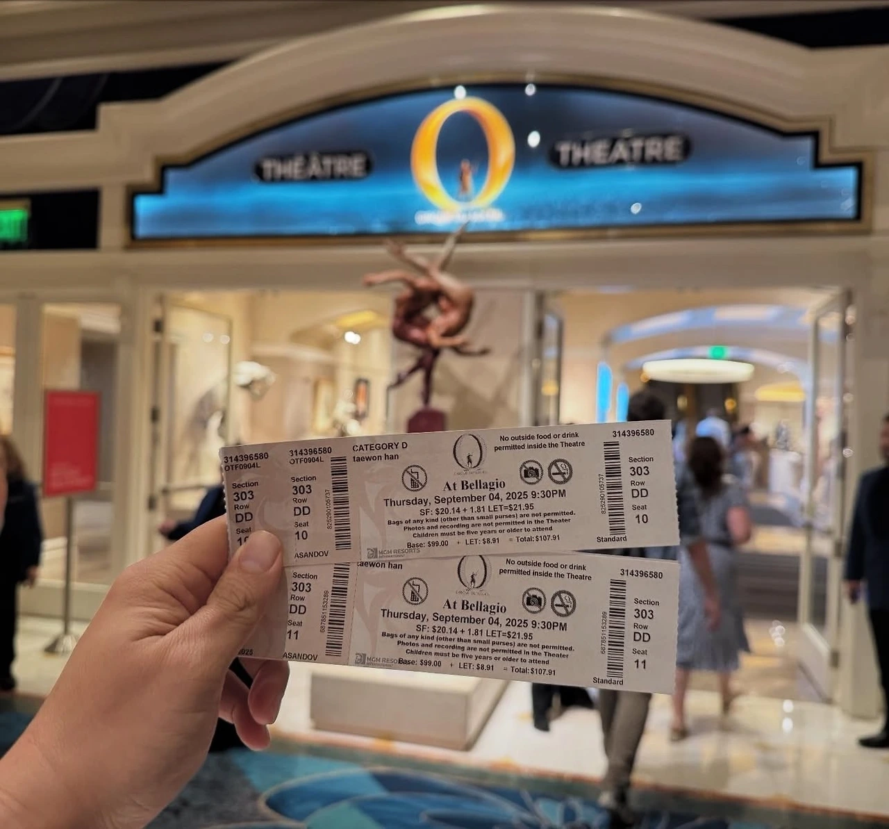 드디어 ‘오 쇼(O Show)’를 감상했다. 수중 무대를 중심으로, 서커스 단원들이 허공을 날아다니며 펼치는 아찔한 퍼포먼스는 그야말로 환상적이었다. 그러나 하루 종일 이어진 여정 탓인지, 감동과는 별개로 체력의 한계를 느꼈고, 결국 공연의 절반쯤은 졸았던 것 같다. 그 사실이 아쉽고도 미안할 만큼, 공연은 정말 인상 깊고 대단했다.