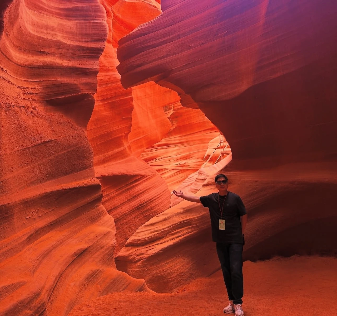 마지막으로 찾은 곳은 로어 앤털로프 캐년(Lower Antelope Canyon)이었다. 좁은 바위 틈 사이를 걷는 그 길은 마치 지구의 속살을 통과하는 듯한 느낌이었다. 바위틈 사이로 스며드는 빛은 오묘한 색감을 만들어냈고, 물결치듯 굽은 암석들 사이에서 인간은 한없이 작아졌다. 한 걸음 내딛을 때마다 새로운 풍경이 펼쳐졌고, 그 무엇도 반복되지 않았다.