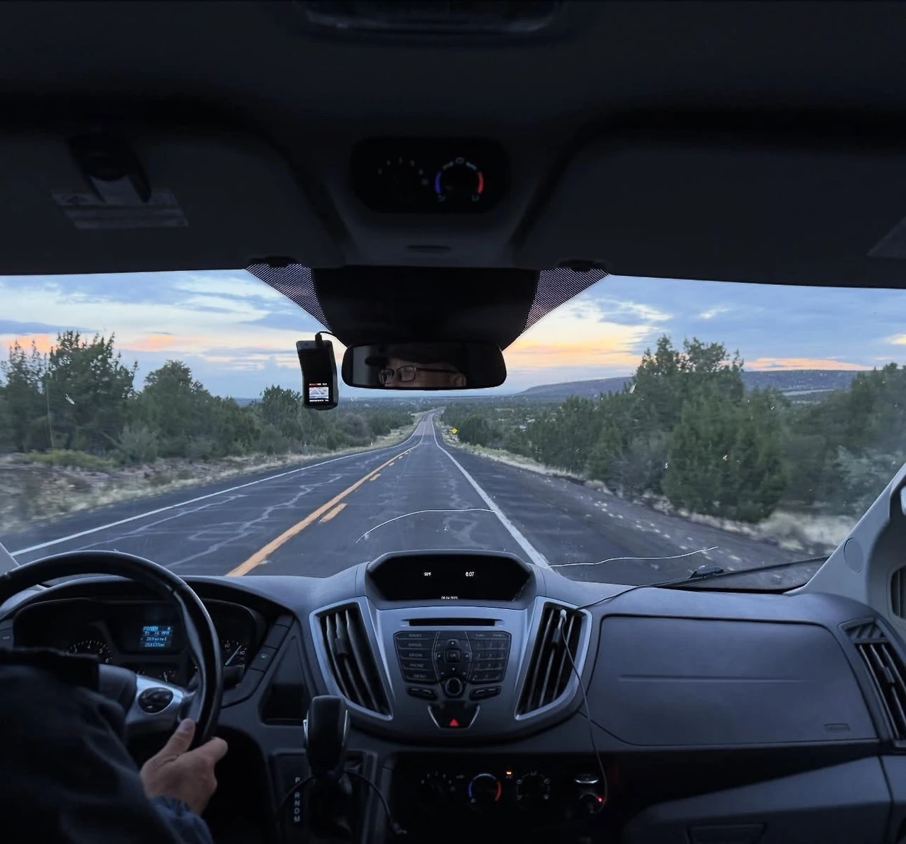 그랜드캐년 당일치기 투어는 자정을 갓 넘긴 오전 12시 50분, 깊은 밤의 어둠을 뚫고 시작되었다. 미국 시차에 간신히 적응했을 무렵, 다시 한 번 밤을 새우는 이동이 시작되었다. 한국인 가이드가 운전하는 차량에 몸을 실은 우리는 사막의 깊은 밤길을 달려갔다.