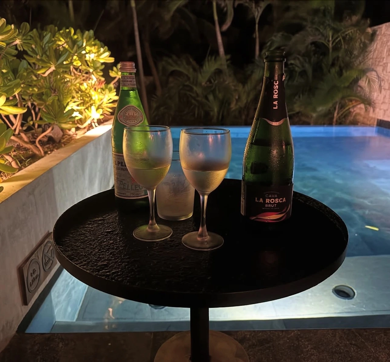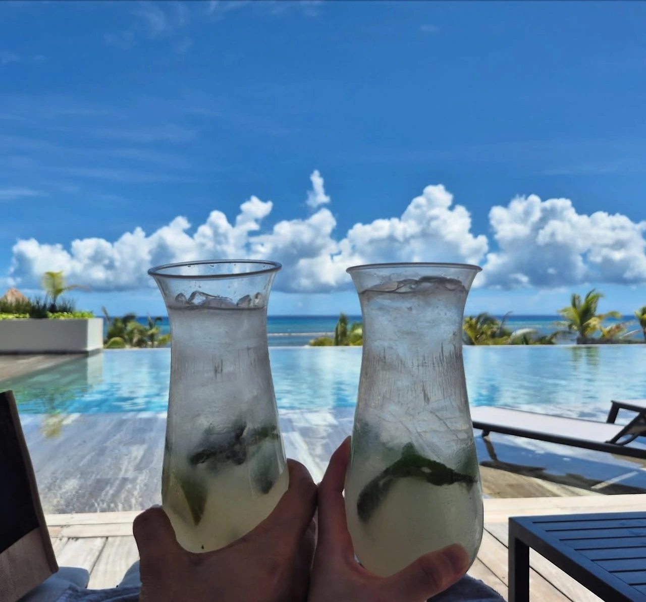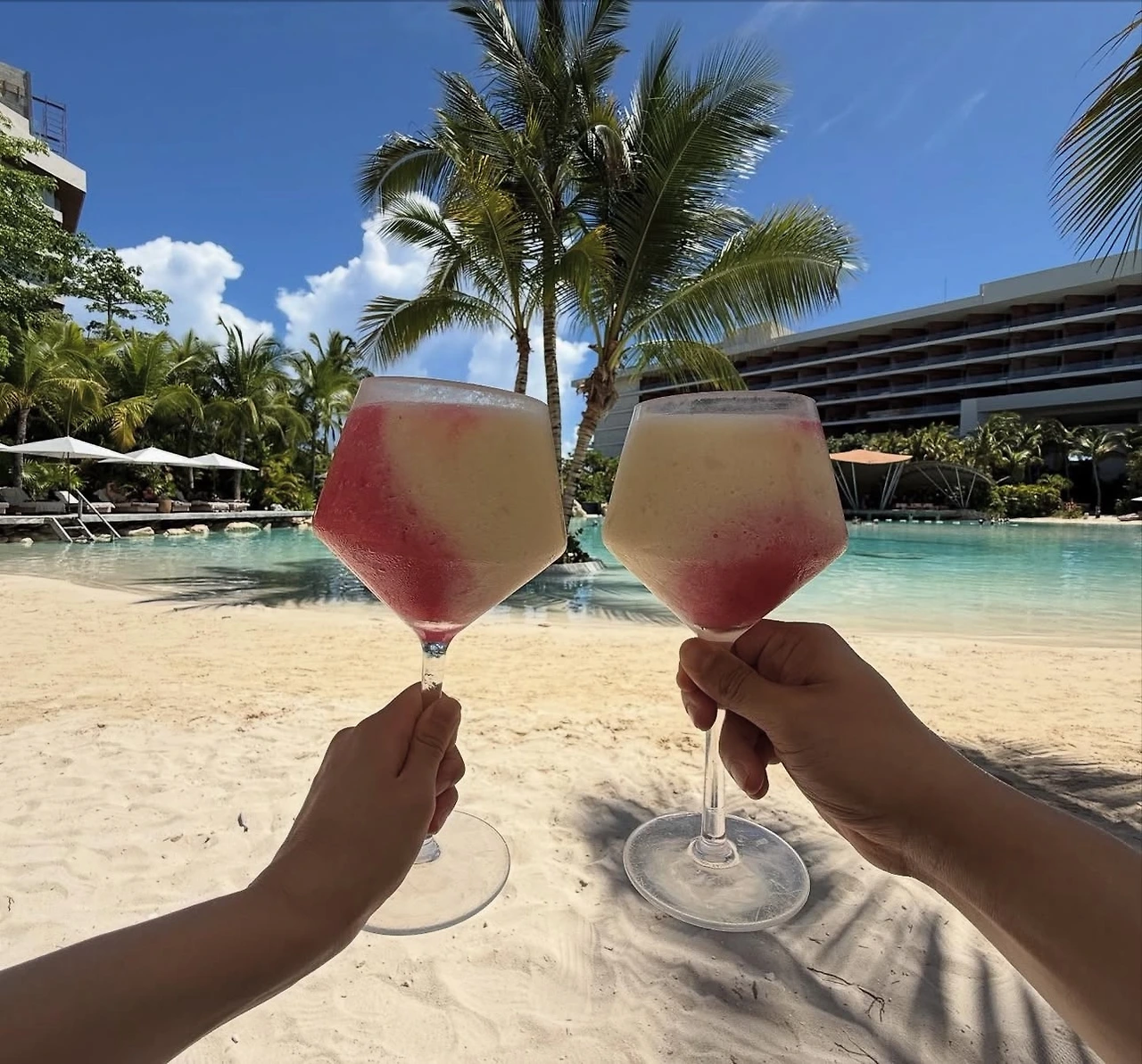 올인클루시브 호텔은 처음이었다. 그래서 가능한 한 모든 레스토랑과 시설, 룸서비스를 경험해 보고 싶었다. 아침에는 마켓 코너(Market Corner)에서 뷔페를 즐겼고, 오전에는 임프레션 전용 수영장에서 모히또를 마시며 여유롭게 수영을 했다. 수영장에 들어서자 직원이 직접 썬베드에 수건을 깔아주었고, 마음껏 음료를 주문할 수 있었다. 서양인들이 수영과 전망을 즐기며 여유롭게 시간을 보내는 모습을 보며 우리도 자연스럽게 분위기에 녹아들었다. 곧이어 인공 해변 형태의 수영장에서는 마이애미 바이스(Miami Vice) 칵테일을 마시며 한층 더 여유로운 시간을 보냈고, 점심에는 수영장을 내려다보는 비건 아시안 레스토랑 밤부(Bambo)에서 깔끔한 채식 요리를 맛보았다.