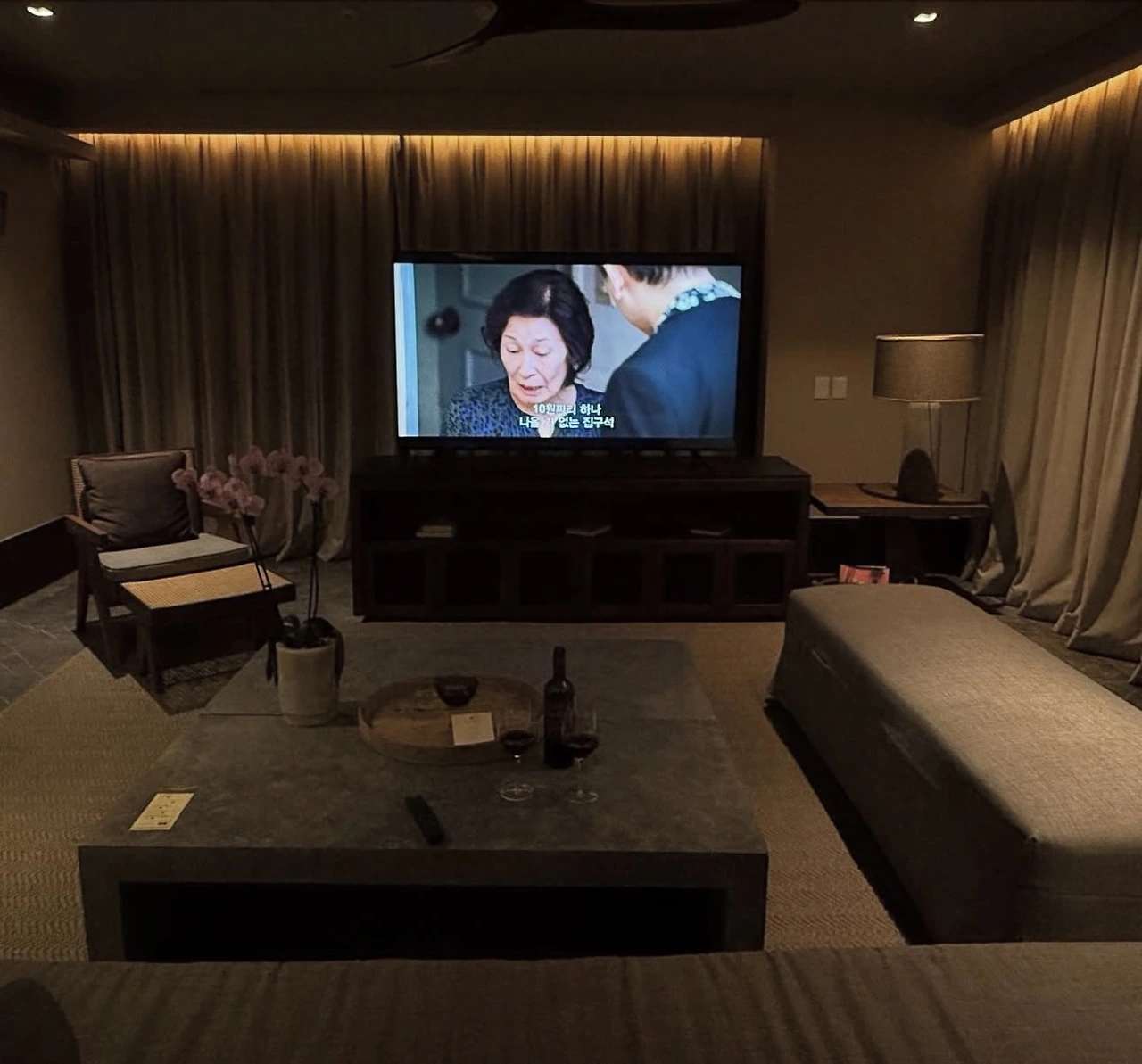 밤에는 극장에서 열린 장기자랑 쇼 ‘시크릿 아이돌(Secrets Idol)’을 관람했는데, 나이 지긋한 노신사가 노래와 춤으로 1등을 차지하는 모습이 인상 깊었다. 공연 후에는 집시 클럽(Gypsy Club)에 들렀는데, 약국에서 암호를 말해야 비밀문이 열리며 입장할 수 있는 독특한 콘셉트가 흥미로웠다. 객실로 돌아와 넓은 거실에서 레드 와인을 곁들이며 드라마 ‘천국보다 아름다운’을 감상하며 칸쿤에서의 마지막 밤을 마무리했다.