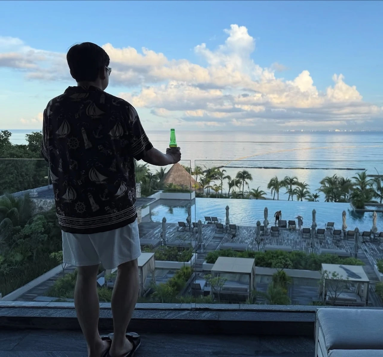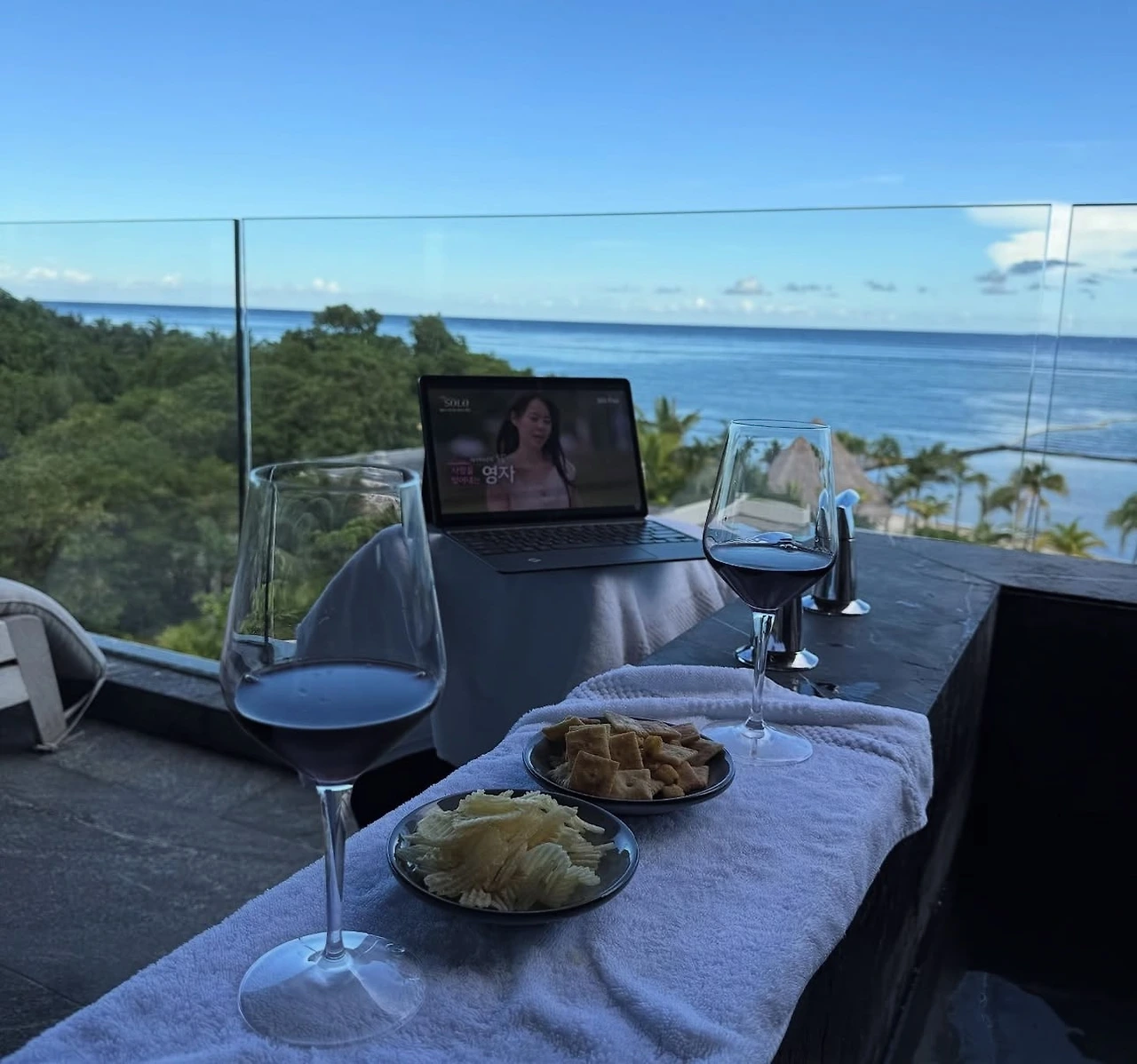 여러 곳을 둘러보는 것도 즐거웠지만, 1박에 300만 원이 넘는 파노라믹 오션프런트 스위트룸 객실에서 보내는 시간이 가장 값진 경험이었다. 특히 날씨가 맑았던 오후, 테라스에서 바라본 해안가와 리조트의 전경은 그야말로 압도적이었다. 휴양을 즐기는 사람들을 내려다보며 마치 세상을 다 가진 듯한 기분이 들었다. 탁 트인 파노라마 뷰를 배경으로 핫텁에 몸을 담그고 샴페인과 맥주를 마시며 유튜브로 ‘나는 솔로’를 감상했다. 또한 저녁에는 이탈리안 레스토랑 알로라(Allora)에서 피자와 파스타를 즐기며 황제와도 같은 칸쿤에서의 하루를 마무리했다.