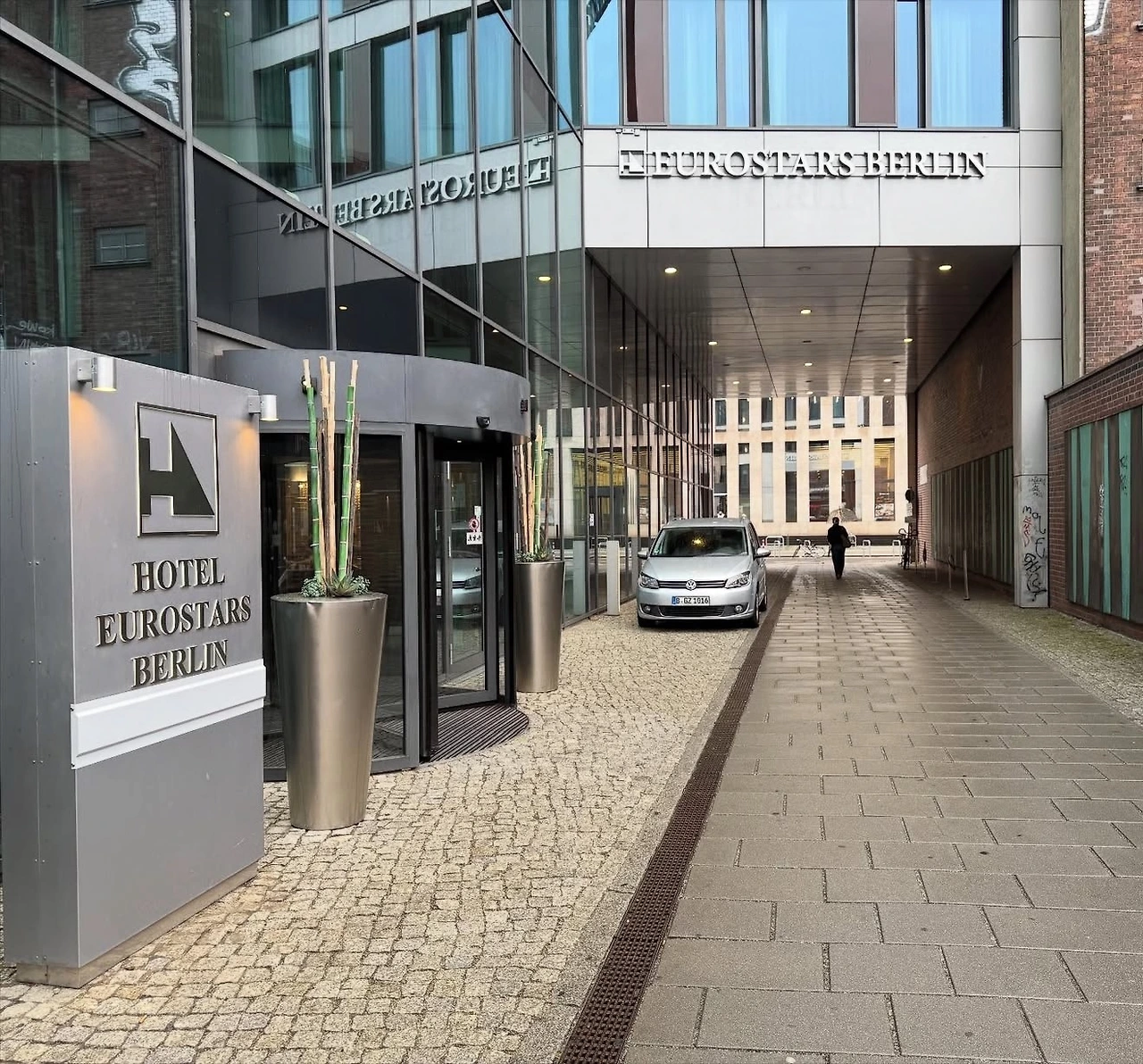 예약된 기차좌석은 가족 칸처럼 대화를 나눌 수 있는 공간이었다. 옆에 앉은 중년 남성 두 명이 4시간 내내 단 한순간의 정적 없이 대화를 이어가는 모습을 보고 독일인들의 스몰토크 능력에 감탄했다. 약 4시간의 ICE 고속열차 이동 후 베를린 중앙역(Berlin Hauptbahnhof)에 도착했다. 우버 택시로 Eurostars Berlin 호텔에 체크인했다. 방은 넓고 깨끗했으며 사우나와 수영장도 갖추고 있어 여행의 시작을 편안하게 만들어주었다. 알고 보니 호텔은 Berlin Friedrichstraße 역 근처로 베를린 중앙역에서 한 정거장 거리였다.
