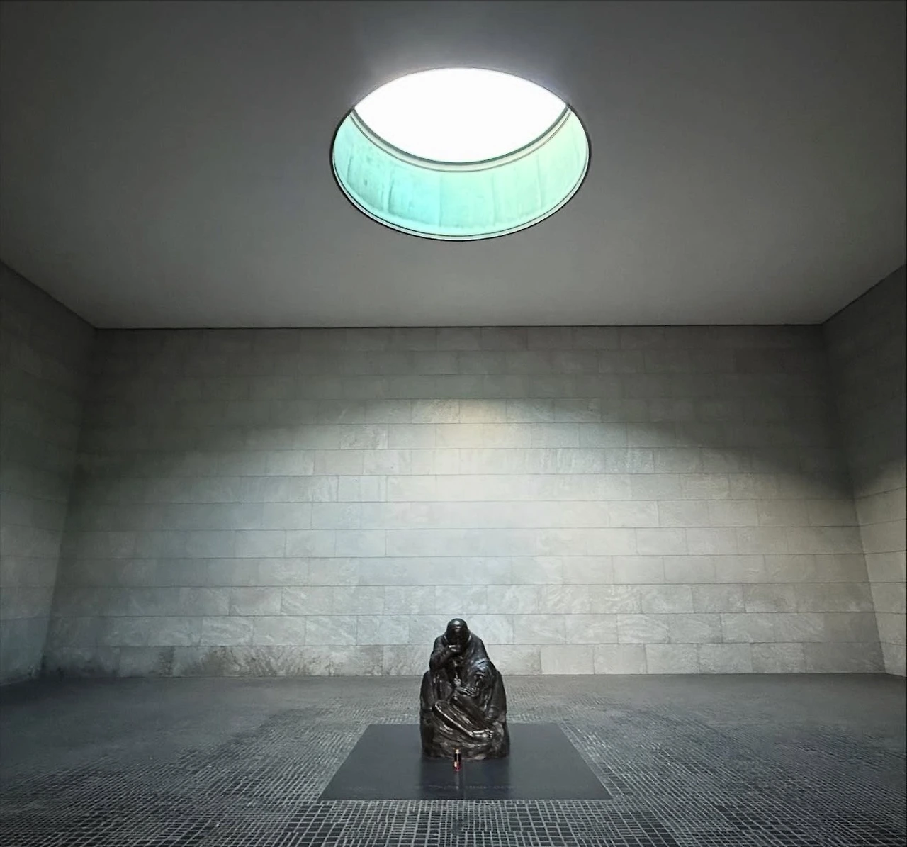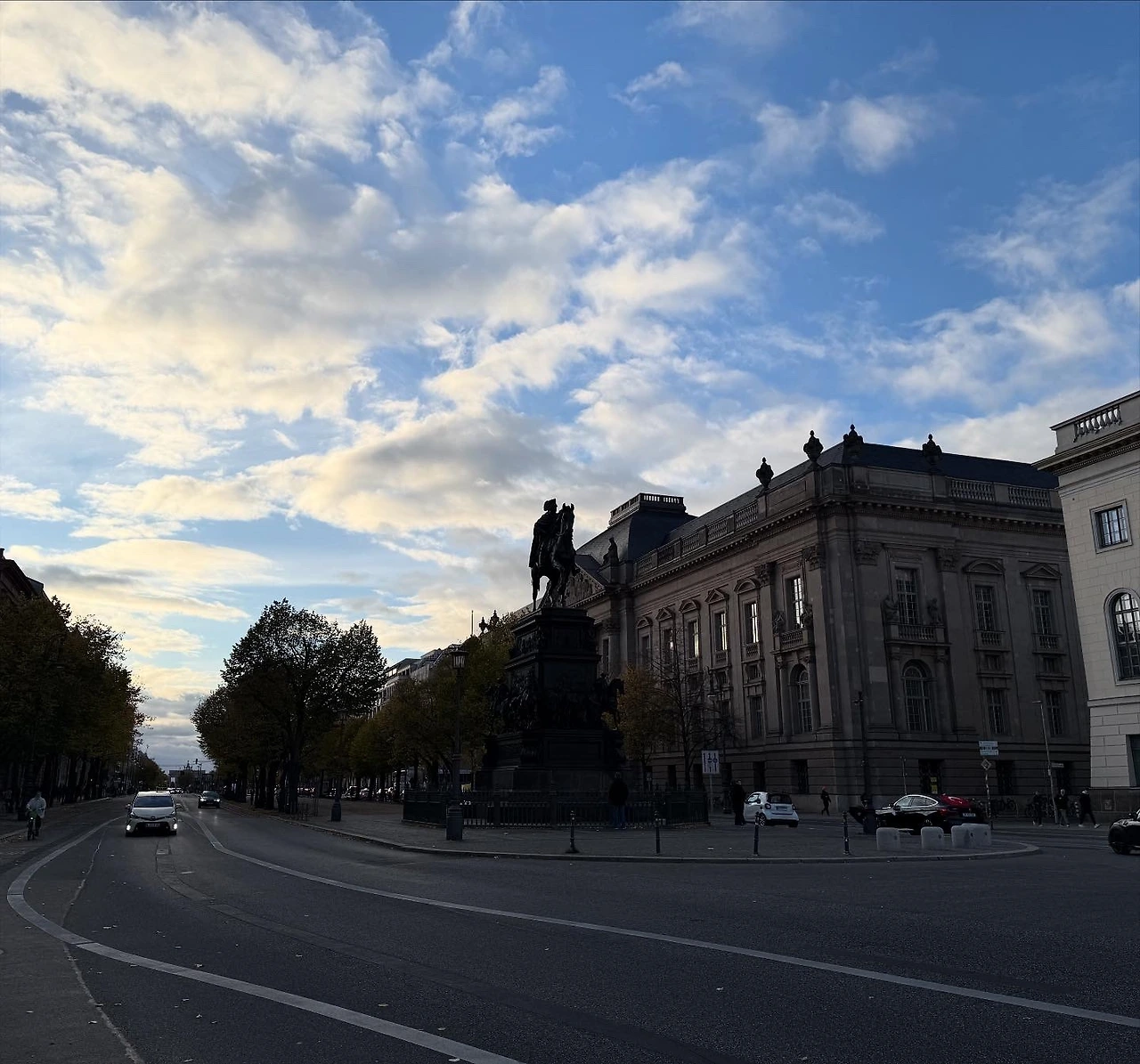 운터 덴 린덴(Unter den Linden) 은 과거 프로이센 왕실과 독일제국 황실의 중심 거리로, 브란덴부르크문까지 이어진다. 프리드리히 대왕 기마상과 길을 따라 늘어선 웅장한 건축물들이 인상적이었다. 거리 한편에 위치한 노이에 비헤(Neue Wache) 내부에는 ‘죽은 아들을 안은 어머니’를 모델로 한 조형물이 있어, 전쟁으로 희생된 이들을 기리는 의미를 생생히 느낄 수 있었다.