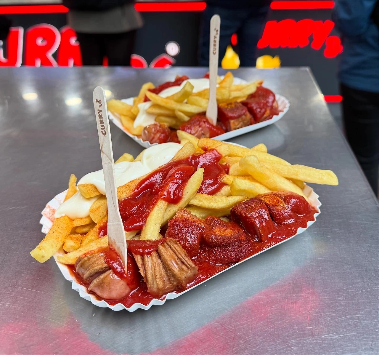 매장 안에는 앉을 수 있는 좌석이 없고, 야외 테이블에서 서서 간단히 즐기는 방식이었다. 소시지와 카레, 케첩이 어우러진 맛은 기대 이상으로 훌륭했다. 마치 한국 포장마차에서 어묵이나 떡볶이를 즐기듯, 독일 사람들도 커리부어스트를 간편하게 즐기는 모습을 볼 수 있었다. 짧은 간식이지만, 현지인의 일상과 문화를 직접 느낄 수 있는 소중한 경험이었다.