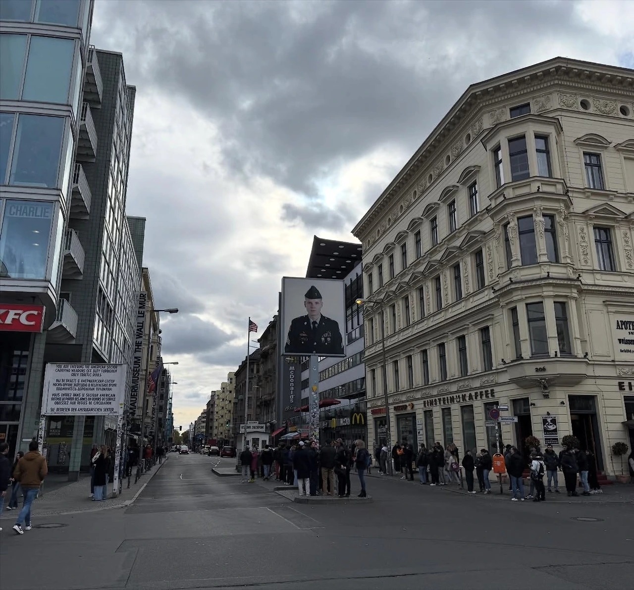 체크포인트 찰리(Checkpoint Charlie)는 분단 시절, 미국군이 관리하던 서베를린과 동베를린 사이의 검문소였다. 현재는 관광용으로 복원되어 냉전 시대의 흔적을 엿볼 수 있는 명소로 남아 있다. 거리 한복판에는 당시 미군 병사의 사진과 경고문이 세워져 있고, 작은 초소가 당시의 모습을 재현하고 있었다. 냉전기 미군이 동독 주민들에게 주었던 위압적인 존재감을 떠올리게 해 인상 깊었다. 주변에는 맥도날드를 비롯한 각종 상점들이 늘어서 있어, 마치 독일 한가운데에 작은 미국이 자리한 듯한 이색적인 분위기를 자아냈다.