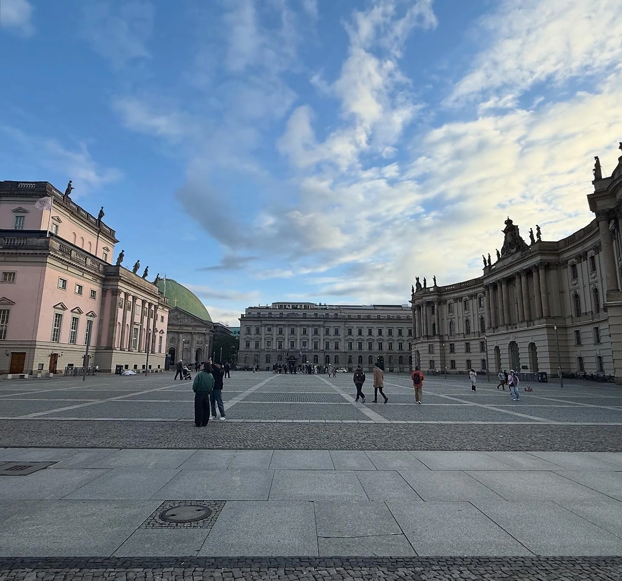 바벨광장(Bebelplatz) 은 웅장하고 화려한 건물들 사이에 위치해 있었다. 광장 한가운데에는 1933년 나치 추종자들이 수만 권의 도서를 불태운 사건을 기념하는 ‘텅 빈 서재’ 기념비가 자리하고 있지만, 당시에는 공사 중이라 직접 볼 수 없었던 점이 아쉬웠다. 주변에는 로마 판테온을 닮은 성 헤트비히 대성당을 비롯해 화려한 건물들이 늘어서 있어, 역사적 깊이를 충분히 느낄 수 있었다.