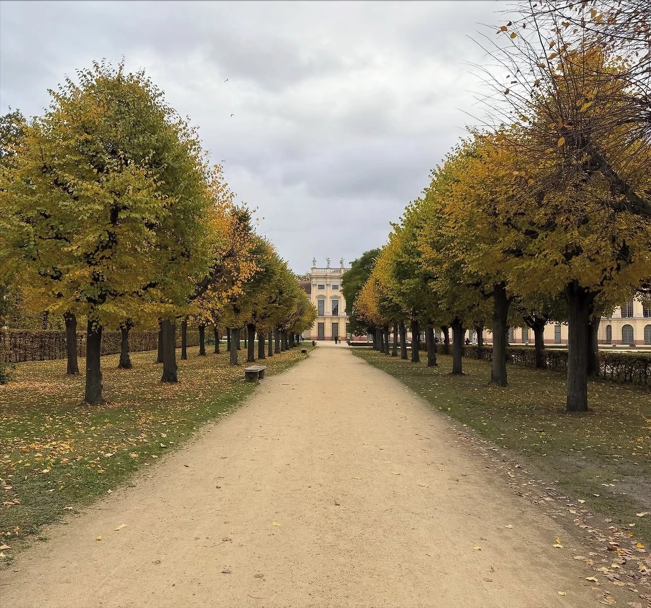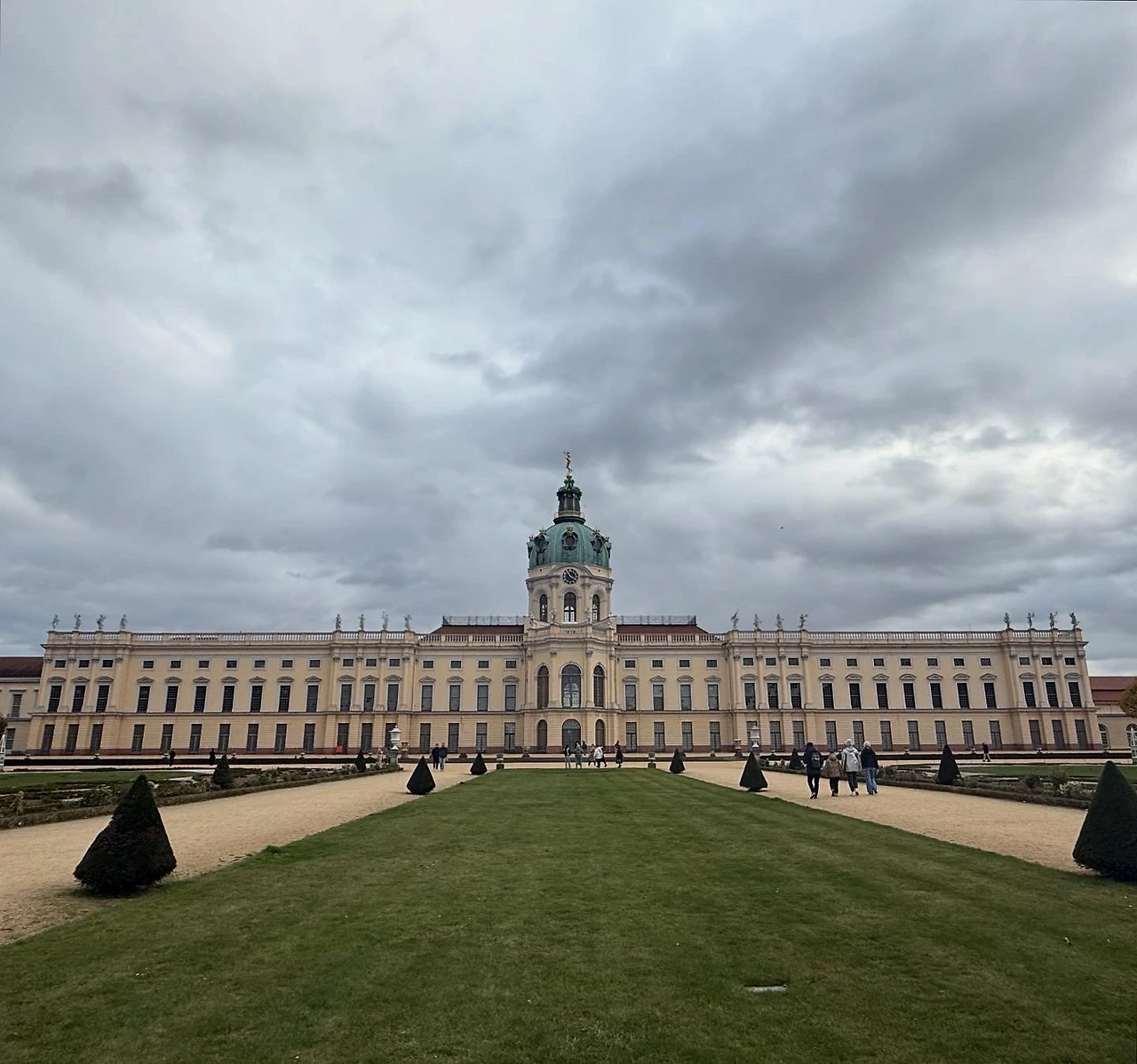버스를 타고 샤를로텐부르크 궁전(Schloss Charlottenburg) 으로 향했다. 이 궁전은 프리드리히 1세가 왕비를 위해 1713년에 지은 궁전으로, 이름 역시 왕비의 이름에서 따왔다고 한다. 시내에서 조금 떨어진 곳에 자리한 궁전은 드넓은 부지 위에 웅장하게 서 있었고, 그 앞에는 광활한 정원이 펼쳐져 있었다. 특히 정원에는 끝없이 이어진 은행나무가 늘어서 있어, 노랗게 물든 은행잎이 바람에 흩날리며 땅을 황금빛으로 덮었다. 쌀쌀한 가을 공기 속에서 낙엽 밟는 소리를 들으며 산책하니, 가을의 정취가 온몸에 스며드는 듯했다.