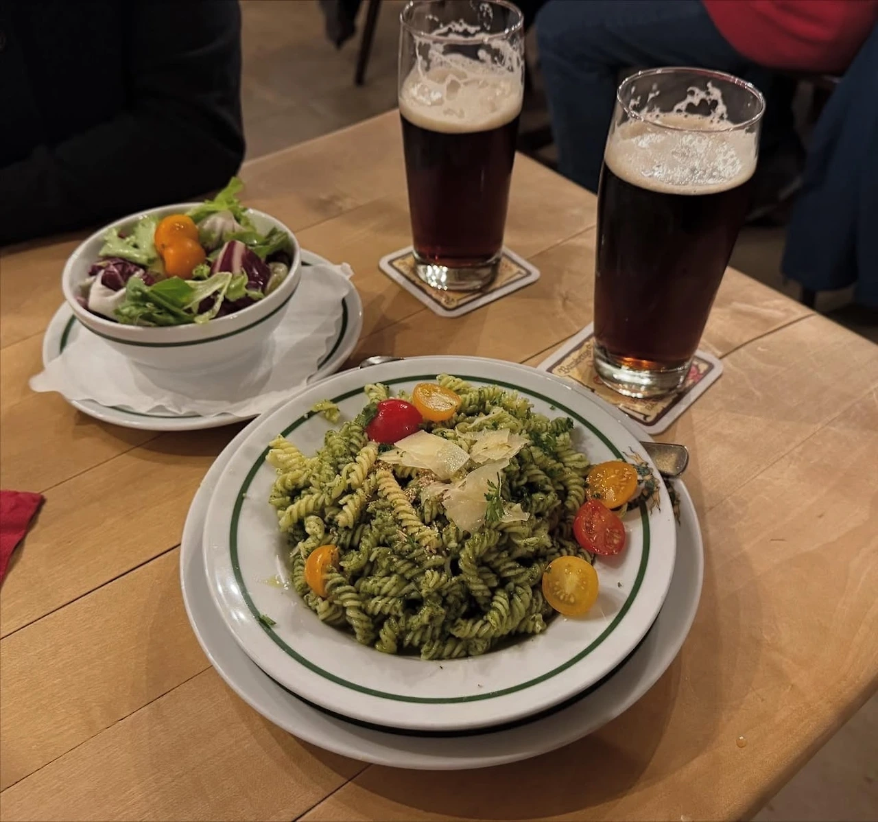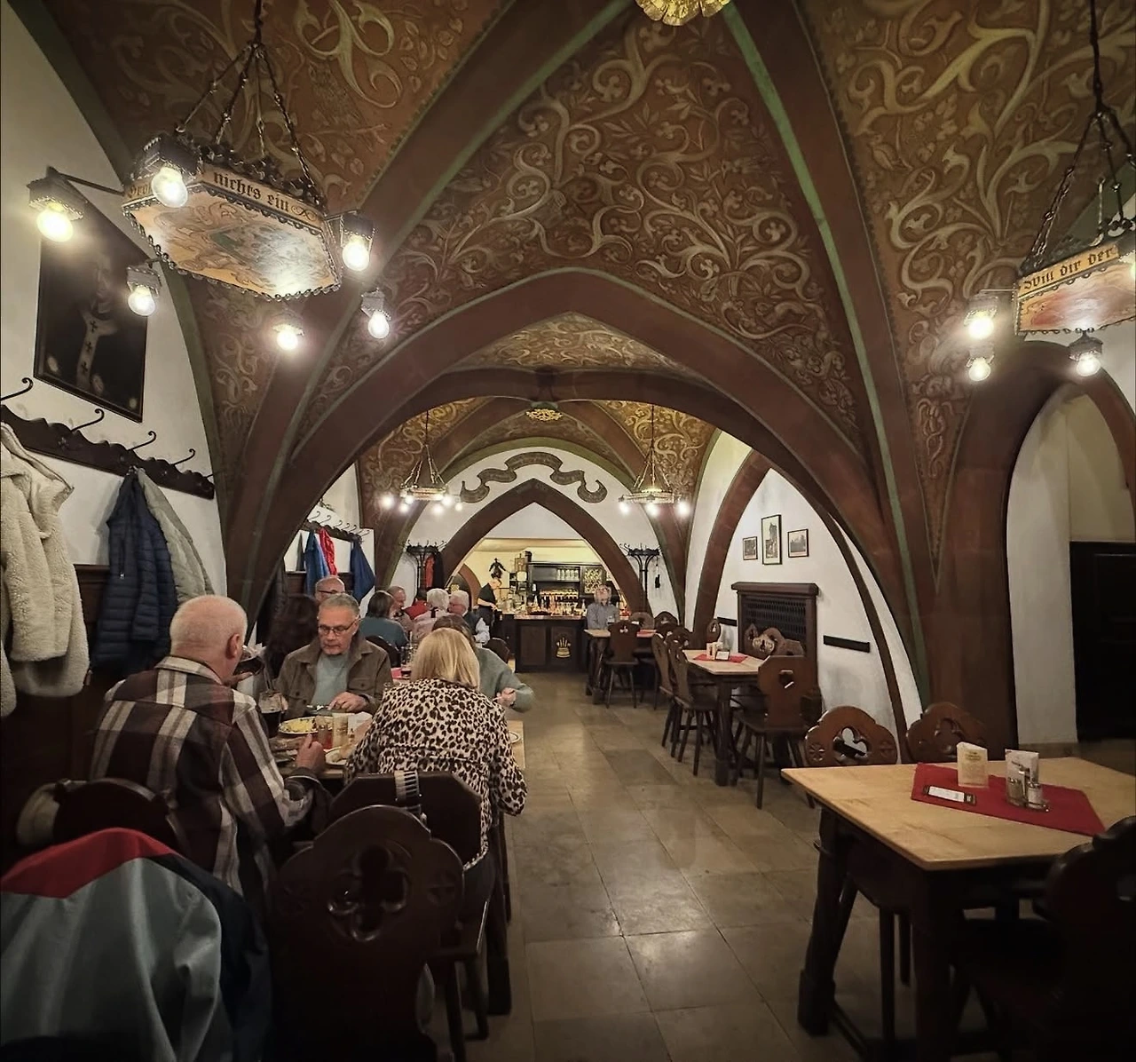 이어서 슐렌케를라(Schlenkerla)를 찾았다. 이곳은 오리지널 라우흐비어로 공인된 곳으로, 1405년에 지어진 오래된 건물이 전통적인 분위기를 한층 더해 주었다. 건물 자체가 아름답고 고풍스러운 느낌이었고, 주변에 사람들도 많아 활기가 넘쳤다. 오리지널 라우흐비어(smoke beer)는 불향이 감도는 독특한 풍미가 있었다. 그동안 마셔본 어떤 맥주와도 달라 정말 새로운 경험이었다. 돼지 어깨 부위인 학세와 소시지, 그린 파스타를 곁들여 여유로운 시간을 보냈다. 식사를 마친 뒤에는 기차를 타고 다시 뉘른베르크로 돌아왔다.