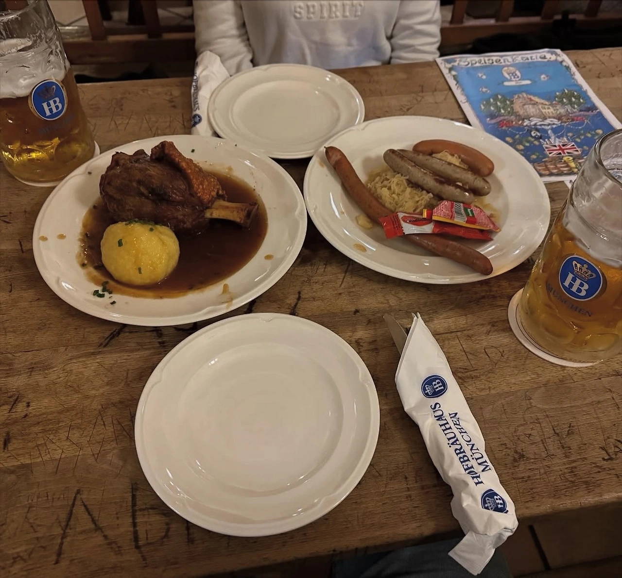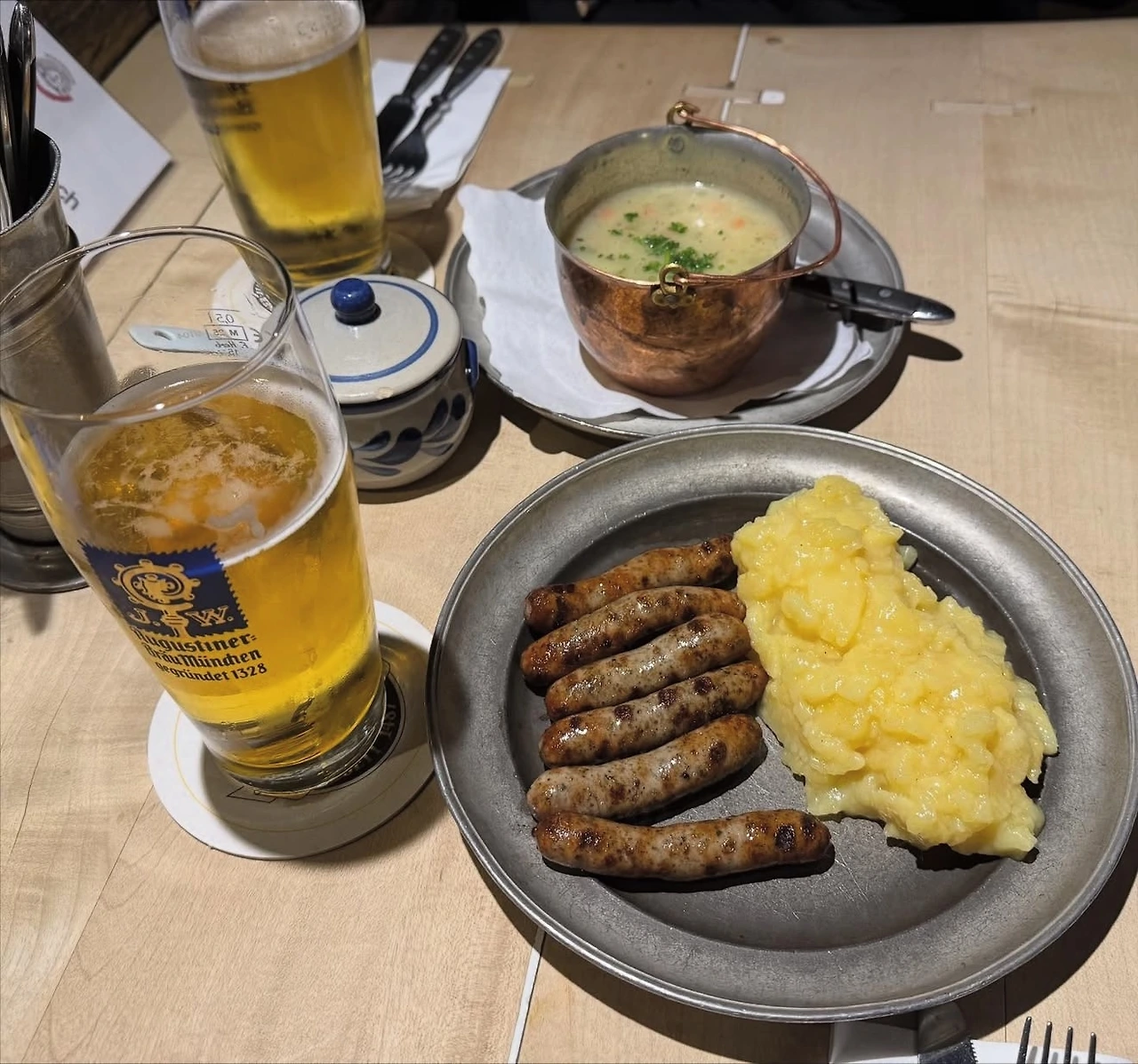 저녁에는 호프브로이하우스(Hofbräuhaus)에 들렀다. 전 세계 관광객으로 늘 붐비는 시끌벅적한 대형 비어홀로, 명성으로는 단연 세계 최고다. 호프집이라는 말의 어원이 된 곳이기도 하다. 1589년 바이에른 왕실의 양조장으로 시작했으며, 누구나 잔을 들고 와 테이크아웃으로 맥주를 사 마실 수 있어 500년 전부터 인기가 높았다고 한다. 1L짜리 맥주잔에 가득 담긴 맥주와 학세, 부어스트를 시켜 먹었다. 직원이 바구니째 들고 다니며 즉석에서 판매하는 커다란 브레첼도 맛보았다. 하우스 밴드 바로 앞에 앉아 연주를 실컷 들을 수 있어 더욱 흥겨웠다.