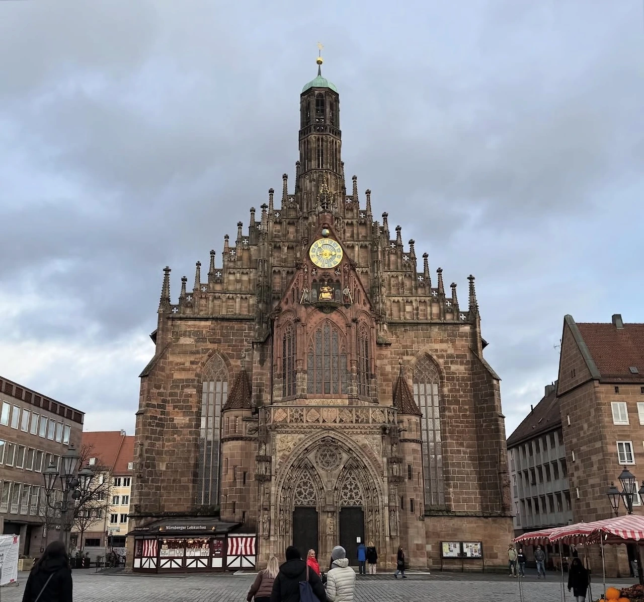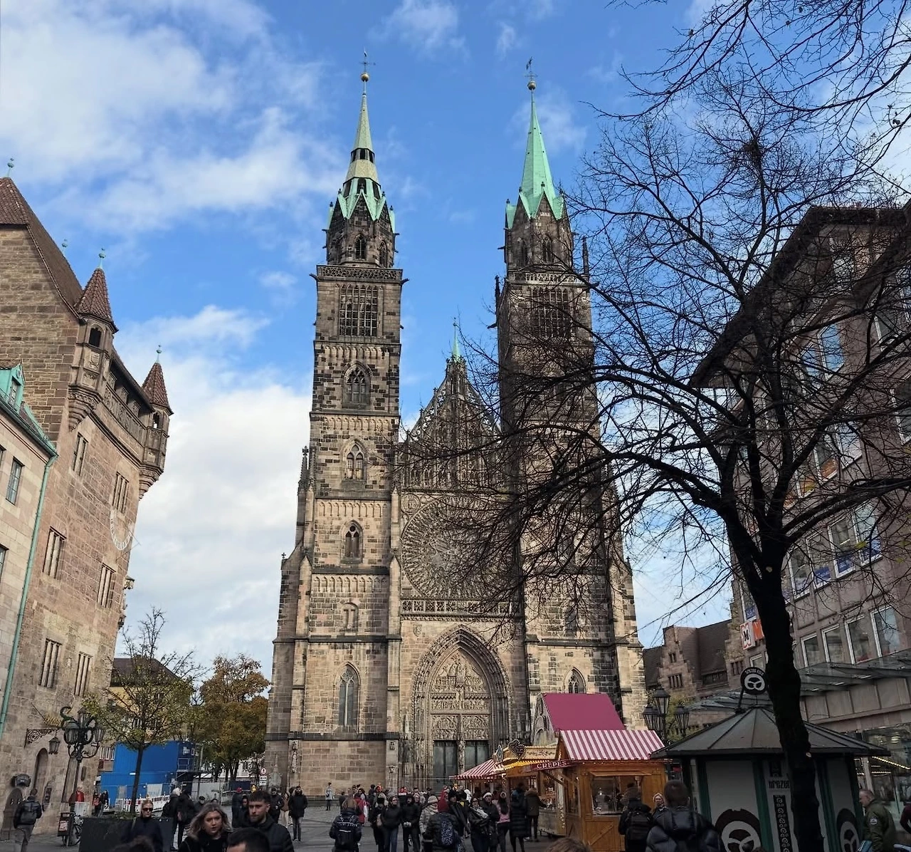박물관 다리를 건너 중앙마르크트 광장(Hauptmarkt)으로 이동했다. 세계적으로 유명한 뉘른베르크 크리스마스 마켓의 주 무대인 중심 광장이다. 광장 앞에는 성모 교회가 서 있고, 전통 상점과 레스토랑들이 주변을 채우고 있어 풍경 자체가 동화 같았다. 광장 자체도 아름다웠지만, 뉘른베르크 전체의 중세 분위기가 합쳐져 최고의 크리스마스 마켓을 만들어준다는 느낌이 들었다.
