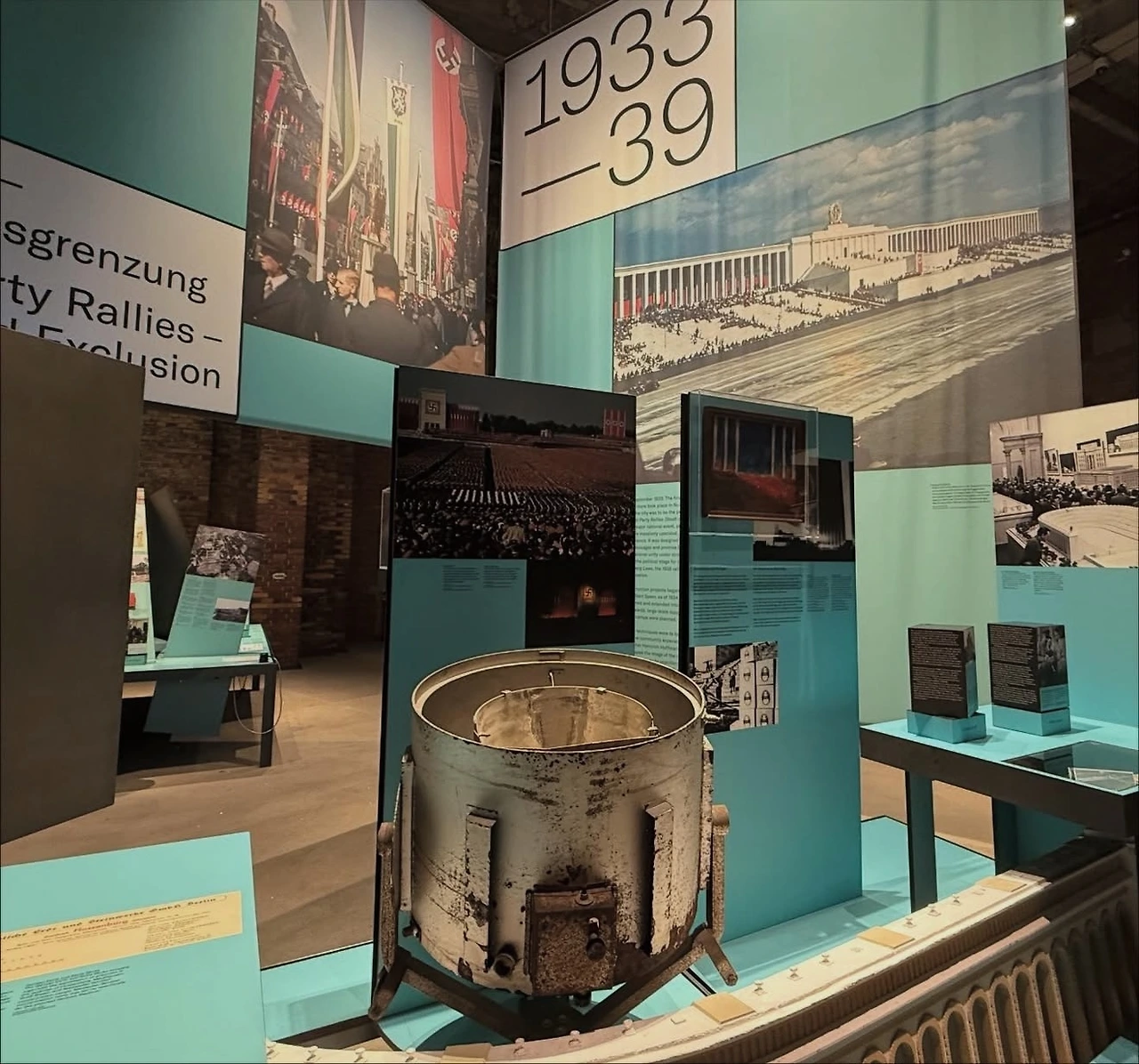 6일 차는 뉘른베르크의 다크 투어를 진행했다. 첫 번째 목적지는 나치 전당대회장이었다. 뉘른베르크는 히틀러가 ‘제3제국’의 이상을 구현하고자 했던 도시로, 실제로 시내에서 대규모 군사 퍼레이드가 열렸고, 초대형 전당대회장을 건설해 나치의 성지로 만들고자 했다. 설계 규모만 보더라도 당시의 광기와 집착을 느낄 수 있었다. 하지만 방문 당시에는 대대적인 보수 공사가 진행 중이어서 야외 공간은 관람할 수 없었고, 실내 기획 전시만 볼 수 있어 아쉬움이 남았다. 조금 허전한 마음을 달래기 위해 내부 카페에서 커피와 빵으로 간단히 아침을 해결했다.