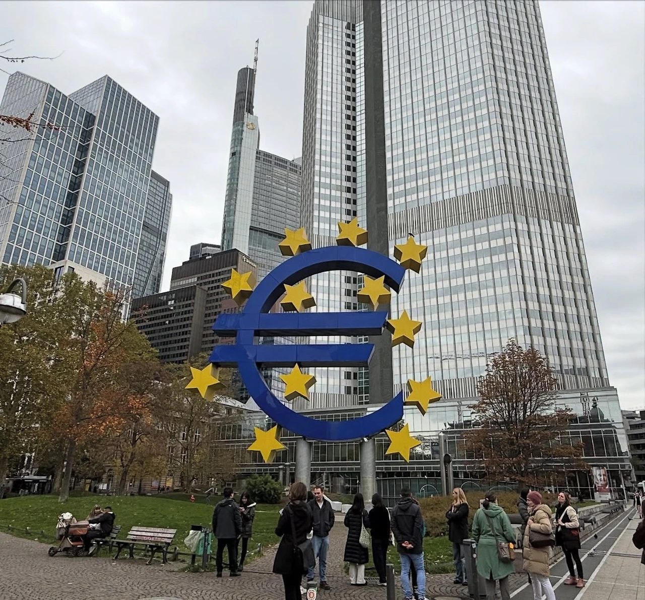 9일 차는 한국으로 돌아가는 날이었다. 호텔 체크아웃 후, 귀국 비행기가 17:35 출발이라 오전에 잠깐 시내를 둘러보았다. 중앙역에서 유로타워(Eurotower)까지 걸어가 프랑크푸르트의 상징인 유로 기념물 앞에서 사진을 찍었다.