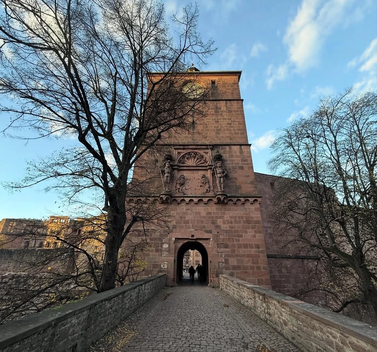 중세풍 거리를 따라 카를문(Karlstor)까지 걸은 뒤, 등반열차를 타고 성으로 올라갔다. 독일에서는 웬만한 언덕도 보통 걸어서 올라가야 했는데, 등반열차가 있다는 것이 신기하고 무척 편리했다. 거의 45도는 되어 보이는 비탈길을 열차가 아무렇지 않게 올라가는 모습도 인상적이었다. 금세 하이델베르크성 정류장에 도착했는데, 이곳이 오래전부터 독일인들에게도 특별한 명소였다는 사실이 실감됐다.
