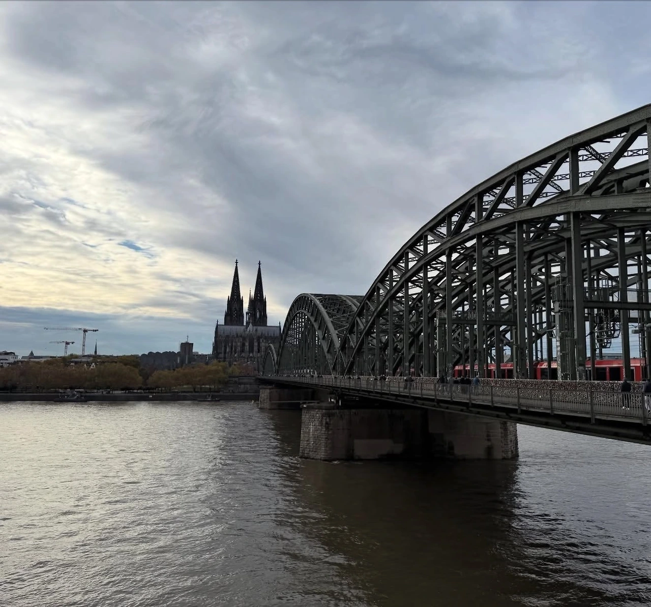 식사 후 호엔촐레른 다리(Hohenzollernbrücke)를 건너며 라인강을 산책했다. 1911년에 완성된 보행 철교로 100년이 넘는 역사를 가지고 있다. 난간에는 오랜 세월 걸린 수많은 자물쇠가 있어 남산의 사랑의 자물쇠를 떠올리게 했다. 보행로 옆으로 열차가 지나가는 모습도 낭만적이었다. 강 건너편에서 바라본 쾰른 대성당과 다리는 마치 영화의 한 장면 같았다.