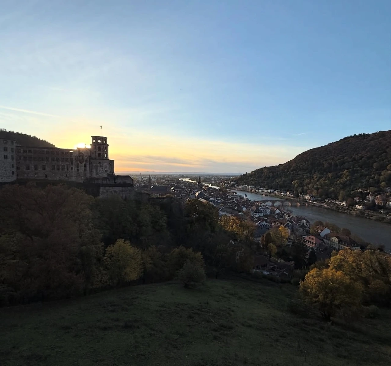 가까이서 본 하이델베르크성은 일부가 폐허처럼 남아 있어 오히려 더 낭만적인 분위기를 풍겼다. 언덕 위에서 내려다본 구시가지와 네카어강, 그리고 서쪽으로 지는 태양이 만들어낸 석양은 말 그대로 장관이었다. 옛 권력자들이 높은 곳에서 세상을 내려다보며 느꼈을 우월감이 어떤 것이었을지 상상하기도 했다. 독일 여행의 하이라이트로 하이델베르크가 항상 꼽히는 이유를 직접 느낀 순간이었다.