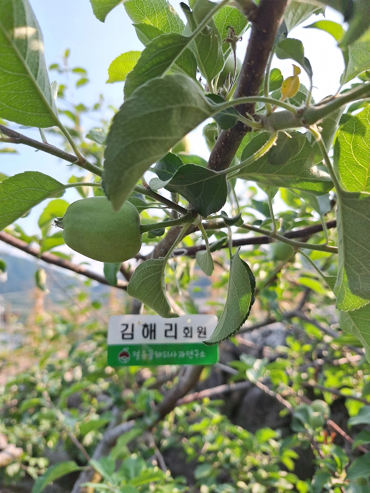 회원들과 좀 더 나은 소통을 위해 사과나무에 회원 명찰도 달아주었다. 나무에서 싹이 나고 꽃이 피고 열매 맺고 자라는 모습들을 SNS를 통해 수시로 소통을 하고 있다. 회원들이 현장체험은 아직 어렵다. 거리가 멀어서이다. 그들의 거주지는 모두 서울이고 이곳은 경남 밀양의 영남 알프스 산자락이기 때문이다.