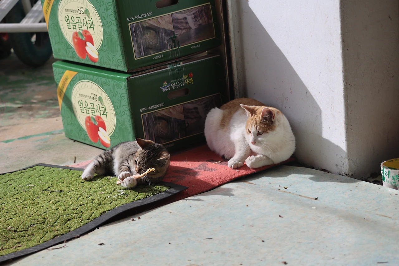 그 뒤로도 새끼 고양이가 터를 거기로 잡았는지 들락날락 하는 통에 아예 창고를 고양이들한테 개방하기로 했다. 새끼 고양이를 따라 들어오는 고양이들도 여럿 생겼기 때문이었다. 가끔씩 대소변 청소 등 뒤치닥 할 거리가 생기긴 했지만 그것은 내가 해야 할 일의 일부로 기꺼이 받아 들이기로 했다. 원래 창고 문을 닫아 놓았던 이유가 바로 이러한 불편 때문이기는 했다.