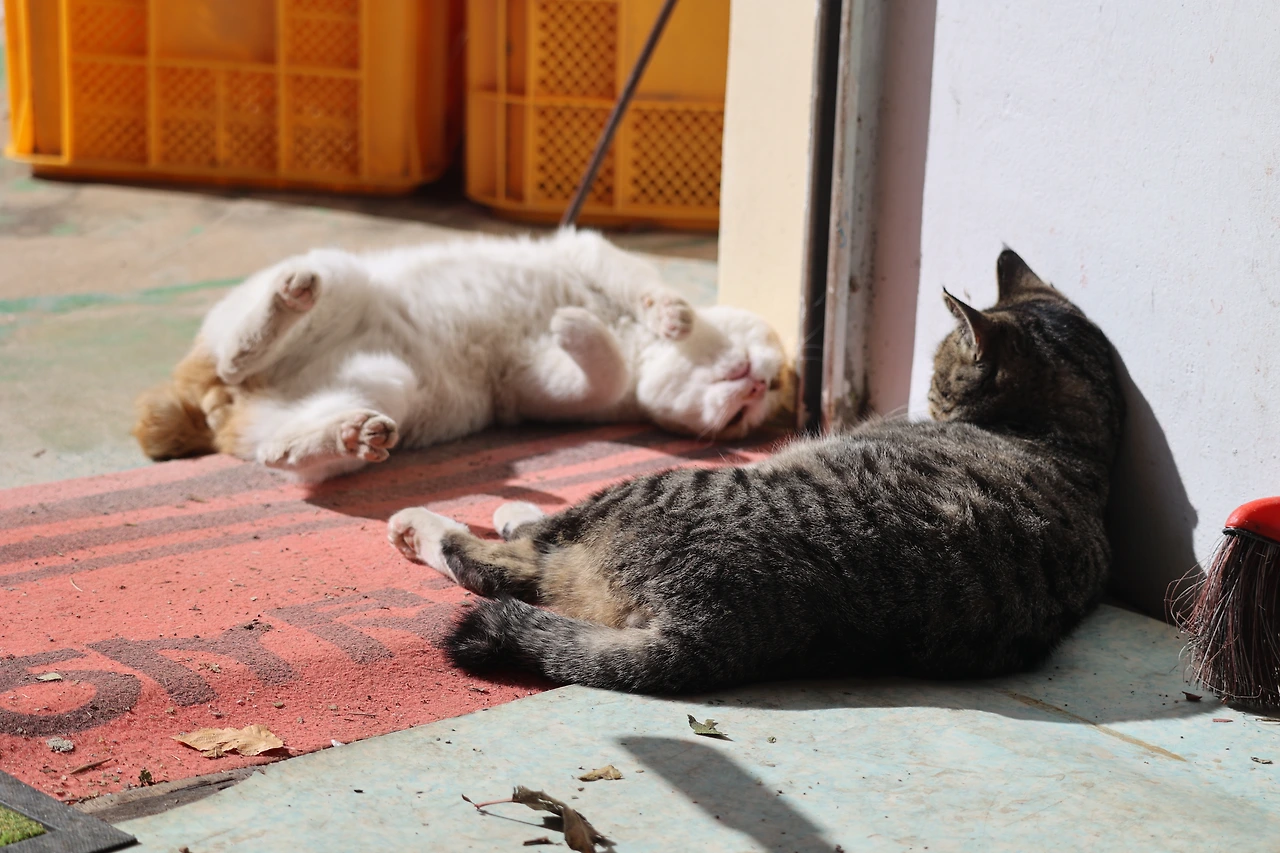 추운 이런 날씨에 같이 살던 엄마도 동생도 없이 아직 어린 노랑이에게 한집에서 등을 기대고 체온을 나눌 형이 생긴 것은 고무적이다. 친해져서 노랑이가 얼룩이 형한테 장난을 걸기도 한다.