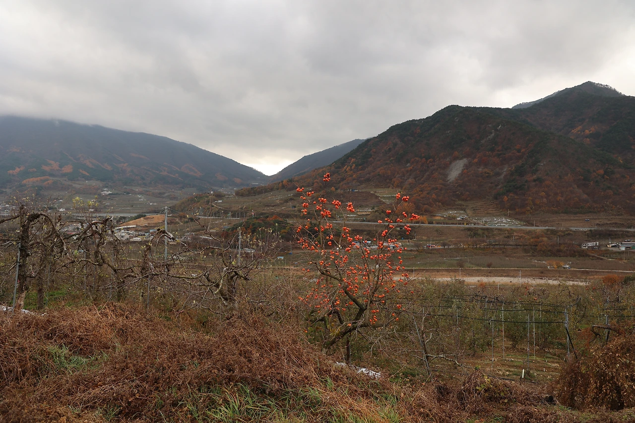 추석지나 늦가을 빨갛게 익은 감이 주렁주렁 달린 감나무는 예쁘다. 그래서 캐논 카메라 400미리 렌즈 줌 당겨 사진 찍기를 즐겨한다.