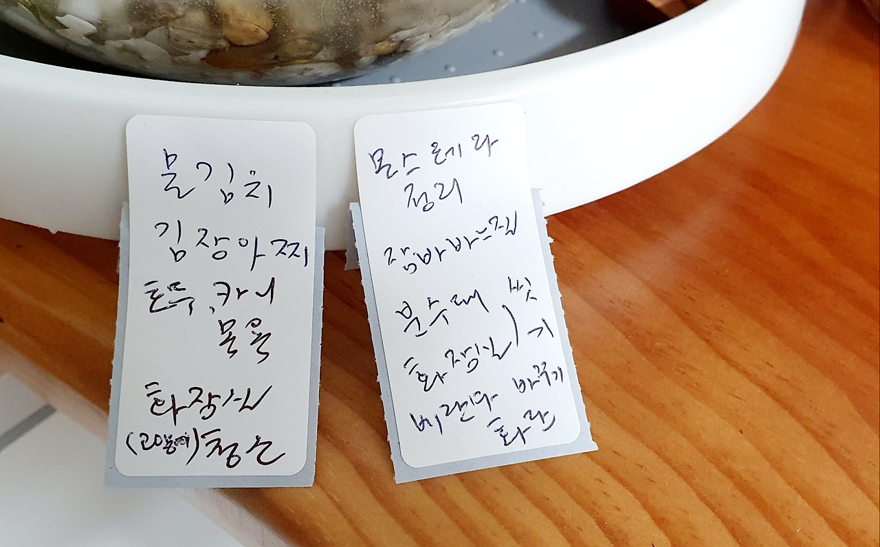 자전거를 타는 내내 악필이지만, 정성 들여 쓴 메모지 글이 잔상이 되어 따라 다녔다. ‘물김치, 김장아찌, 호두․카니 목욕, 냥이 화장실 청소, 몬스테라 정리, 잠바 바느질, 분수대 화장실 씻기, 베란다 화단 바꾸기’