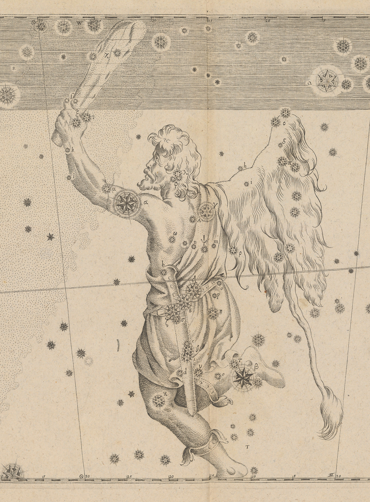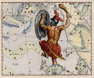 그러자 이번에는 한 달에 한 번이라도 만날 수 있도록, 자신이 지나는 길옆에 별자리로 만들어 달라고 청했습니다. 그래서 오리온은 달이 지나는 길, 즉 천구인 백도白道 옆에 놓이게 되었다는 이야깁니다. 달의 여신 아르테미스와 오리온은 이때부터 한 달에 한 번만 만나게 되었습니다.
