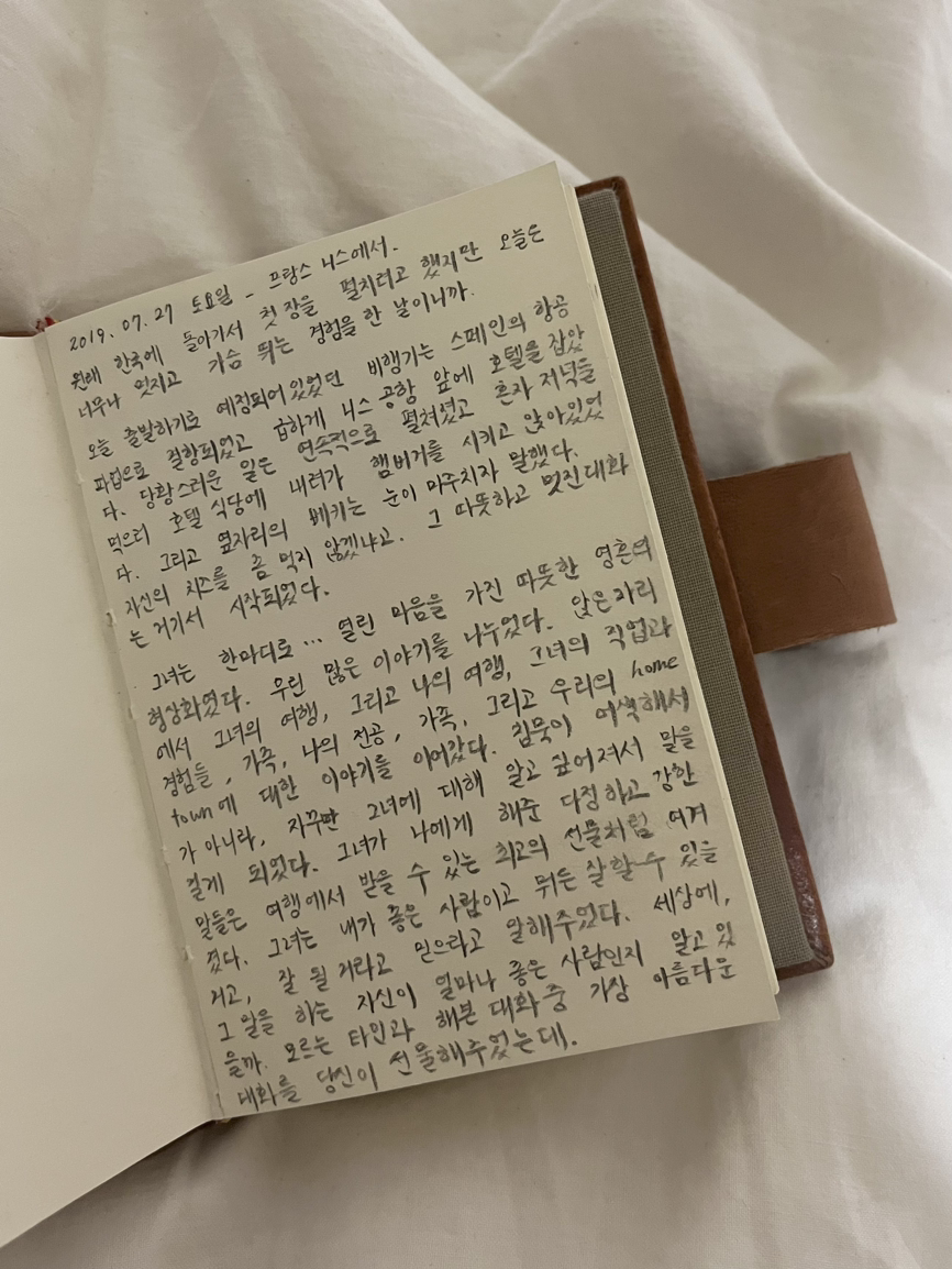 그 자리에서 이메일 주소를 물을까 몇 번을 고민했는지 모른다. 이 대화가 여기서 마지막이 된다는 것이 슬펐다. 그러나 지금보다 훨씬 숫기 없던 그 때의 나에게 그건 너무나 어려운 일이었다. 결국 우리는 밥을 다 먹은 뒤 각자의 호텔방으로 돌아갔다. 그 대화를 잊을까봐 겁이 나서 방에 들어가자마자 피렌체에서 산 가죽 다이어리를 처음으로 펼쳐 마구 일기를 적어내렸던 기억이 난다.