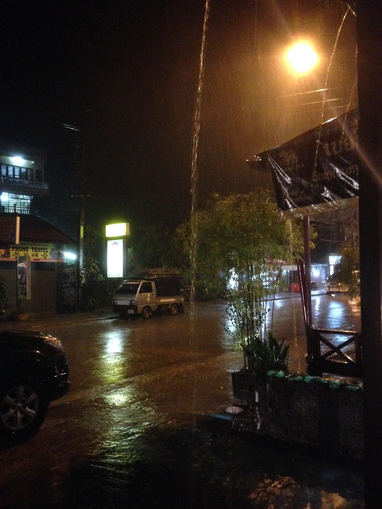 숙소에 가서 잠시 샤워를 하고 쉬고 있는데, 방비엥의 마지막 날이라고 생각이 드니 나가고 싶더라고요. 그래서 무작정 밖으로 나왔어요. 이제는 너무나도 익숙해져 버린 거리를 돌아다니다 지나가는 비를 만났어요. 갑자기 비가 세차게 내려서 정신없이 비를 피했던 순간이에요. 생각이 많은 차였는데 기분이 너무 좋더라고요. 글쎄요. 방비엥에서의 시간을 잊지 말라고 비를 보내주셨을지도요.