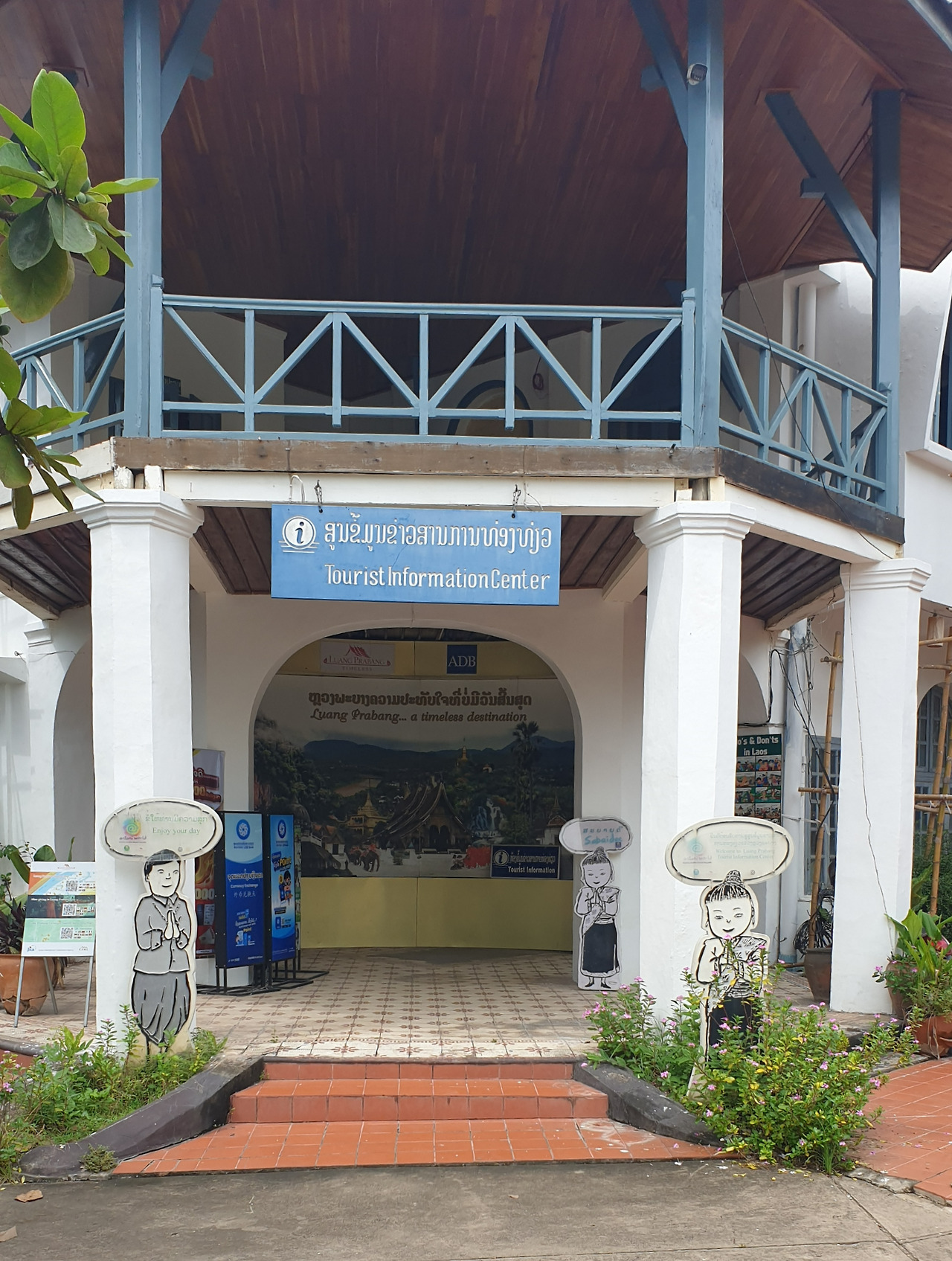 숙소에서 좀 걸어 나오니 학교가 있어요. 비엔티안의 숙소 근처는 초등학교인데 이곳은 중고등학교 같네요. 학교를 지나 좀 걸어 나오니 i가 있더라고요. 들어가서 시티맵이나 투어 관련 정보를 문의해 봐야겠어요.