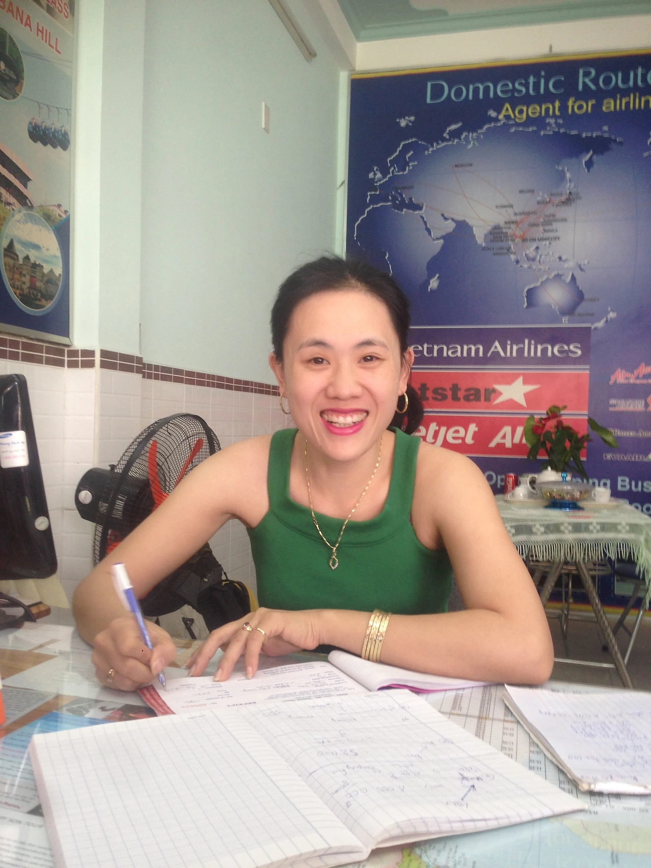시원하지 않지만 뜨거운 차 한 잔을 마시고 숙소로 돌아가 잠시 쉬었다가 므이네로 가는 슬리핑 버스를 예약하러 근처 여행사에 왔어요. 여사장님이 친절하고 밝으세요. 몇 마디 대화를 나누다 보니 옆자리 연하인 남편과 결혼하셨더라고요. 남편 분 칭찬을 아끼지 않았다죠. 순둥순둥해 보이더라고요. 사진 한 장을 부탁드리니 흔쾌히 수락하세요. 참고로 지금도 페이스북에서 서로 라익을 눌러주는 정도는 하네요. 또다시 간다면 글쎄요. 맥주 한잔 정도와 가볍게 식사정도는 할 수 있지 않으려나요.