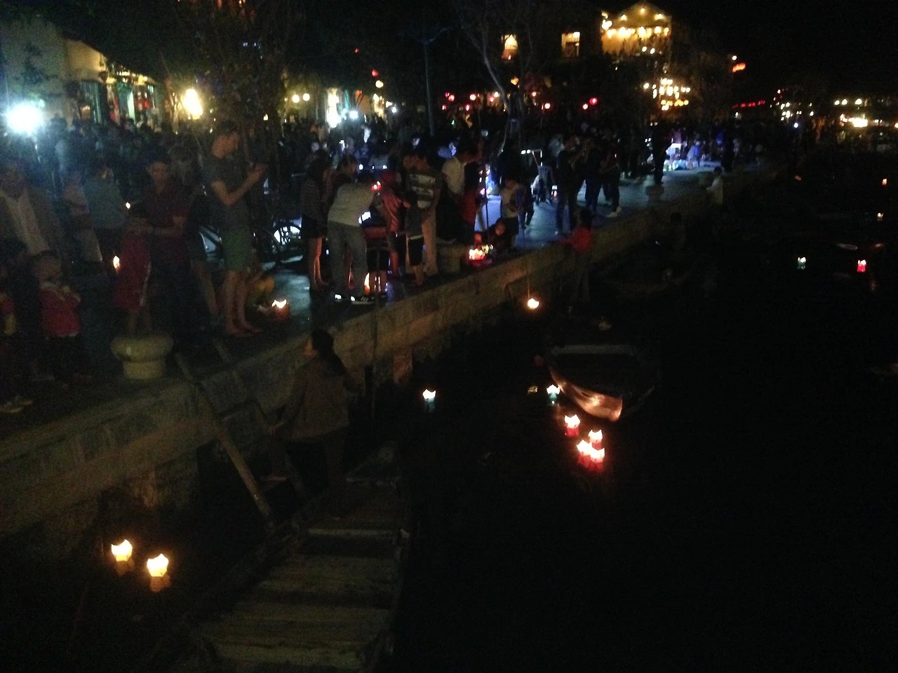 연등 아래 옹기종기 모여있는 사람들이 시야에 들어와요. 새해에 우리가 일출을 보듯 이들도 이렇게 새해를 맞이하는 거겠지요. 새해에 좋은 일을 기원하는 바람을 담아서 물에 띄워 보내네요.