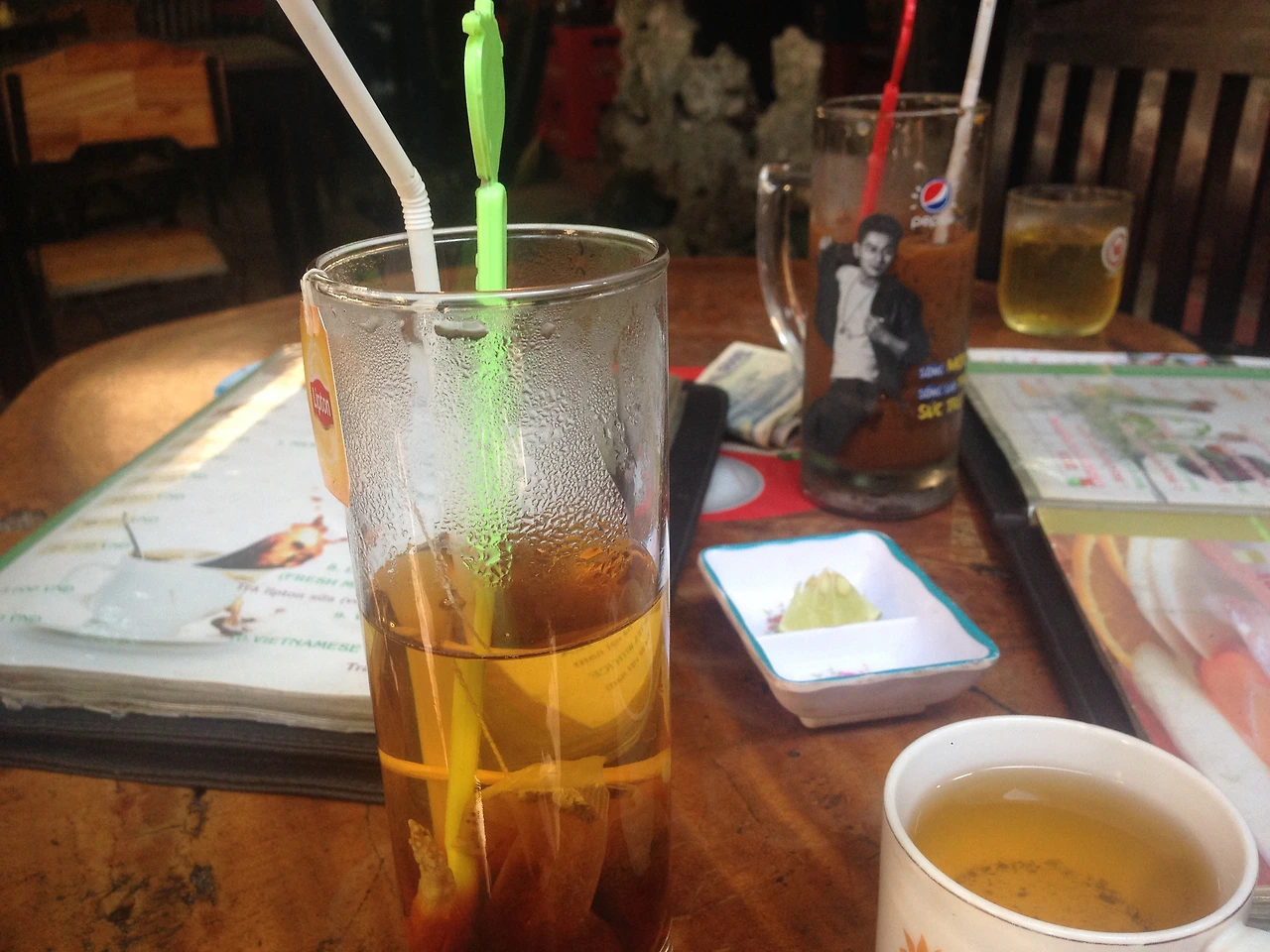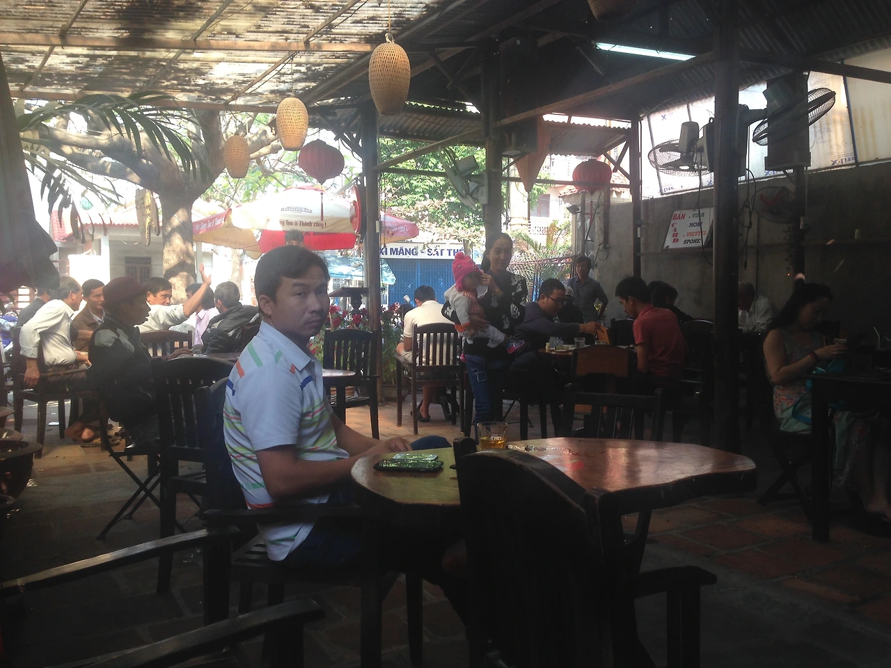 이곳은 정말이지 베트남 현지인들만 가는 식당이었어요. 메뉴판이 죄다 베트남어로만 되어있더라고요. 말 그대로 로컬레스토랑에 왔다는 거죠. 예전에 진짜 중 식당에 가서 자장면을 식혔는데 못 알아먹어서 그냥 나온 적이 있었는데, 딱 그런 느낌이었던 것 같아요. 주문을 받는 여성분만 제스처로 이해를 할 수 있는 정도였거든요. 메뉴를 브랜든과 서로 둘러보다가 사진이 나와있는 음료수란을 한참을 살펴봤네요. 립톤티가 있더라고요. 이미 머릿속에선 한국에서 물처럼 마시는 아이스 아메리카노가 생각이 났지만, 아메리카노가 있는지 물어봐도 이해를 못 하다 보니, 결국 립톤 티가 됐던 것 같아요. 브랜든과 저의 모습이 신기했던 것인지 물끄러미 바라보는 이도 있어요. 아이를 안고 밝은 미소를 짓는 여인의 모습과 식사와 대화에 열중하는 현지인들의 모습이 참 귀한 순간이구나란 생각을 했던 것 같아요.