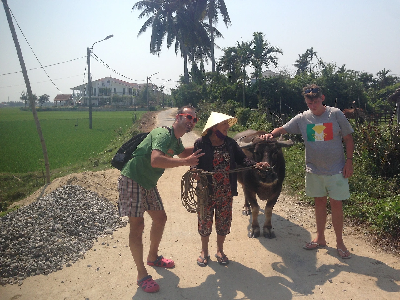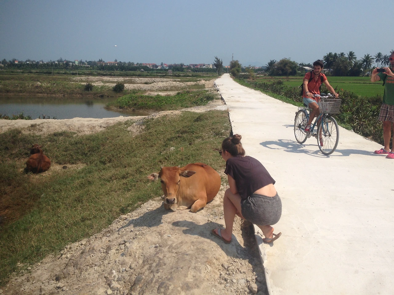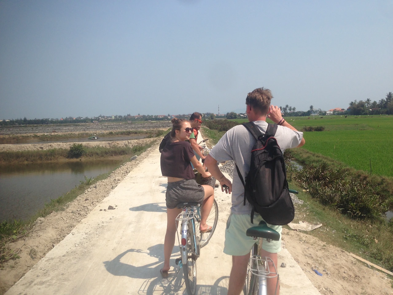 밖을 내려다보니 호이안의 이른 아침이에요. 지난밤 함께 했던 크리스천 삼촌이 오후에 계획이 있냐 하길래 오늘은 미썬 투어를 간다고 하니 로버트와 로라 그리고 줄리앙과 함께 근처 해변에 자전거를 타고 간다고 해요.