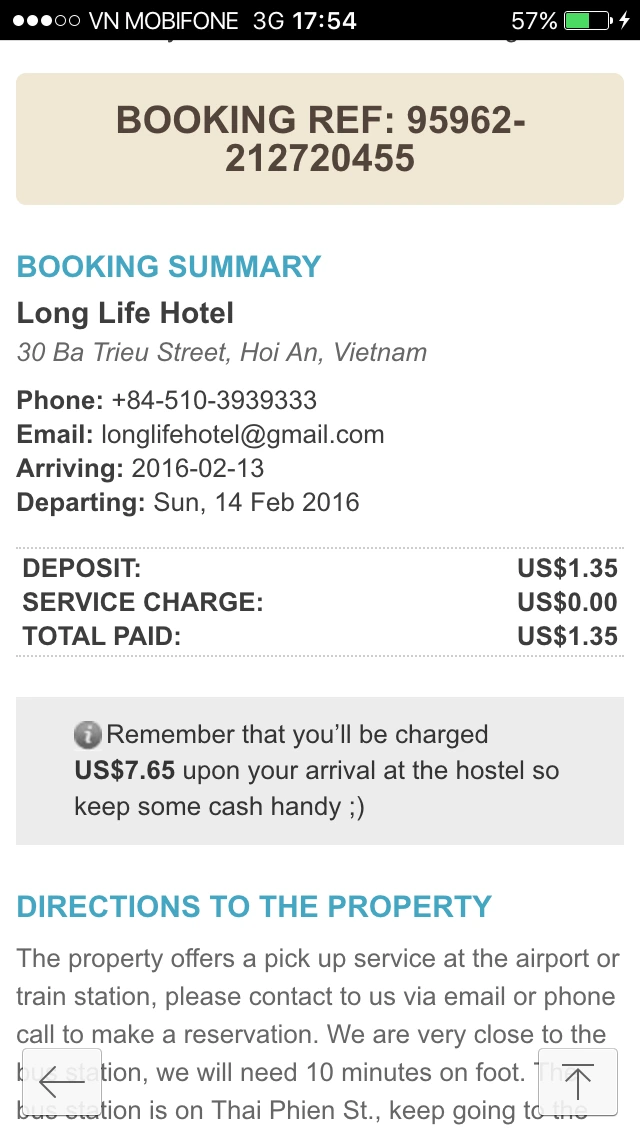 그래서 계획을 살짝 변경했어요. 호이안에서 하루 더 머무르고 냐짱의 2박 예정인 숙소에 전화를 걸어 하루 늦춰서 2박을 한다고요. 하루 더 머물게 될 숙소는 수영장이 있는 롱라이프 호텔이에요.