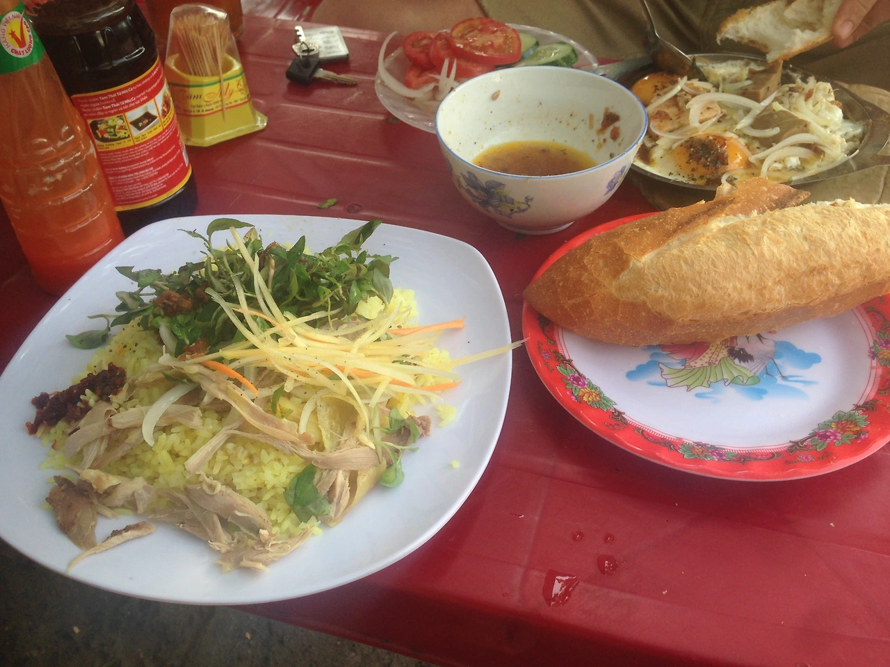갑작스러운 저의 결정에 투어를 안 가게 되니, 게다가 해변으로 향하기로 한 출발 시간까지 시간적 여유가 생기다 보니, 지난밤에 함께 했던 미국에서 온 브랜든이 로컬푸드를 먹자고 해서 근처 식당으로 발걸음을 옮겼어요. 이럴 줄 알았으면 투어 예약을 안 할 걸 그랬어요. 그래도 뭐 어쩔 수 없지요. 제 선택인 걸요. 머리보단 가슴이 시키는 곳으로 가는 게 맞으니까요. 그래서 아침은 그렇게 반미샌드위치와 치킨 볶음밥을 먹었어요. 정말이지 음식메뉴에 fried rice with 만 들어가면 큰 걱정 없이 주문을 하게 되는 것 같아요.