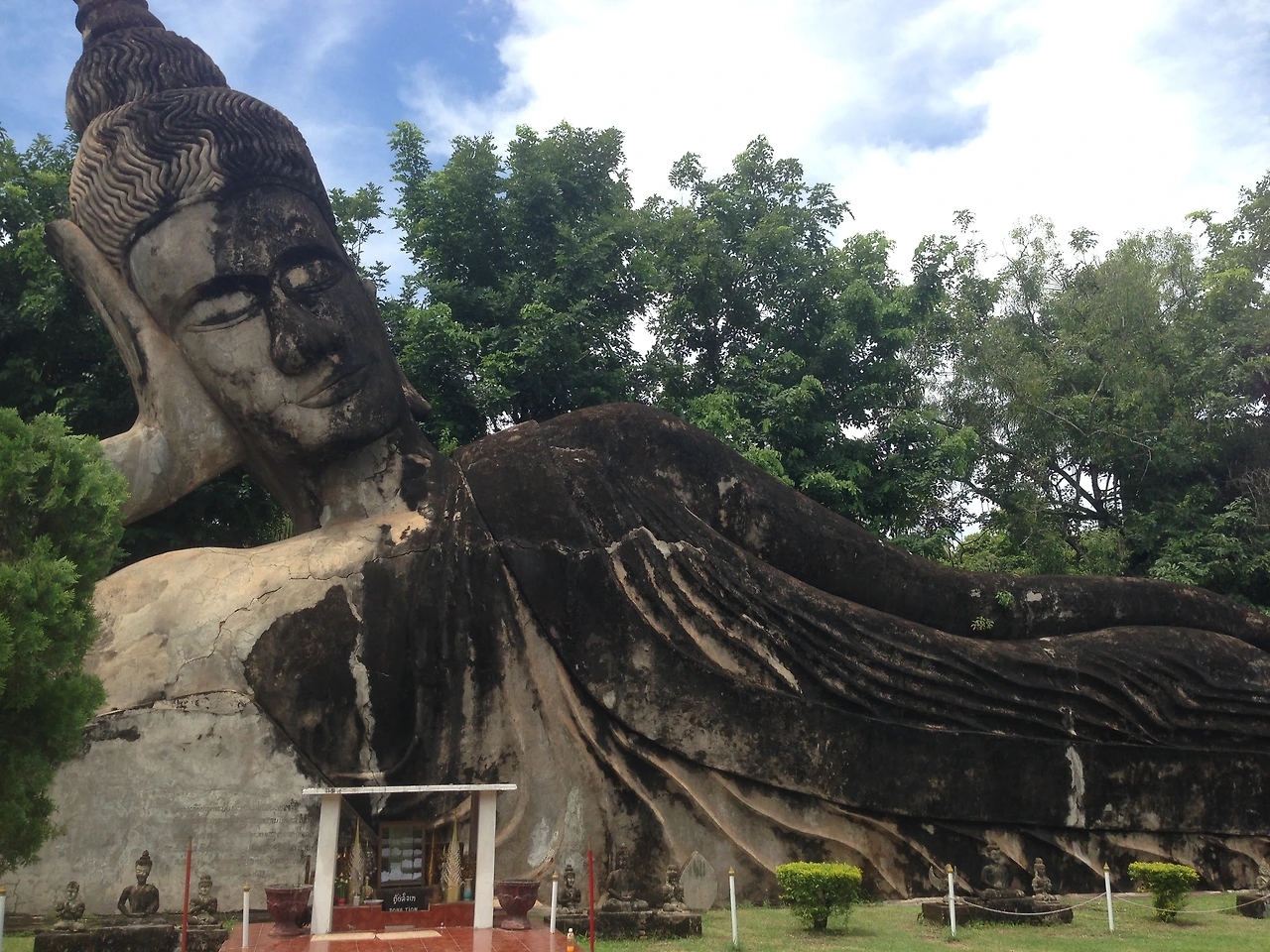 붓다 파크를 거닐다 보니 조각상들이 시선을 잡아요."하늘을 벗 삼아 조각했던 걸까요?" 여유로움과 편안함이 느껴지는 거대한 와불상이에요.