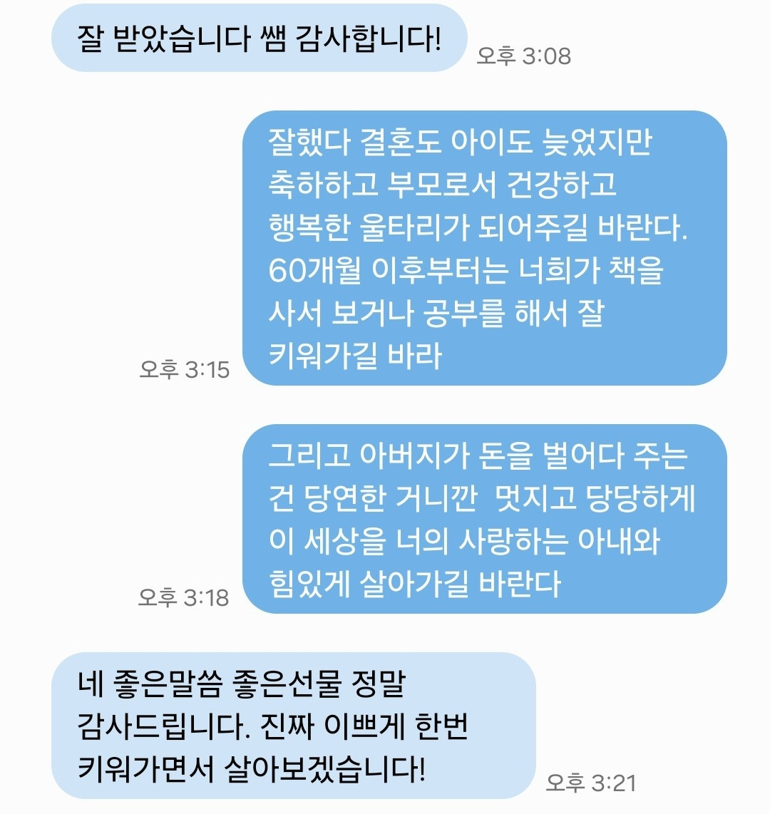 부모가 돼 봐야 부모의 마음을 안다는 말이 있는데, 나도 아직 못 해본 걸 제자 녀석이 한다는 말에 만감이 교차했지만, 잘하지 않으려나?