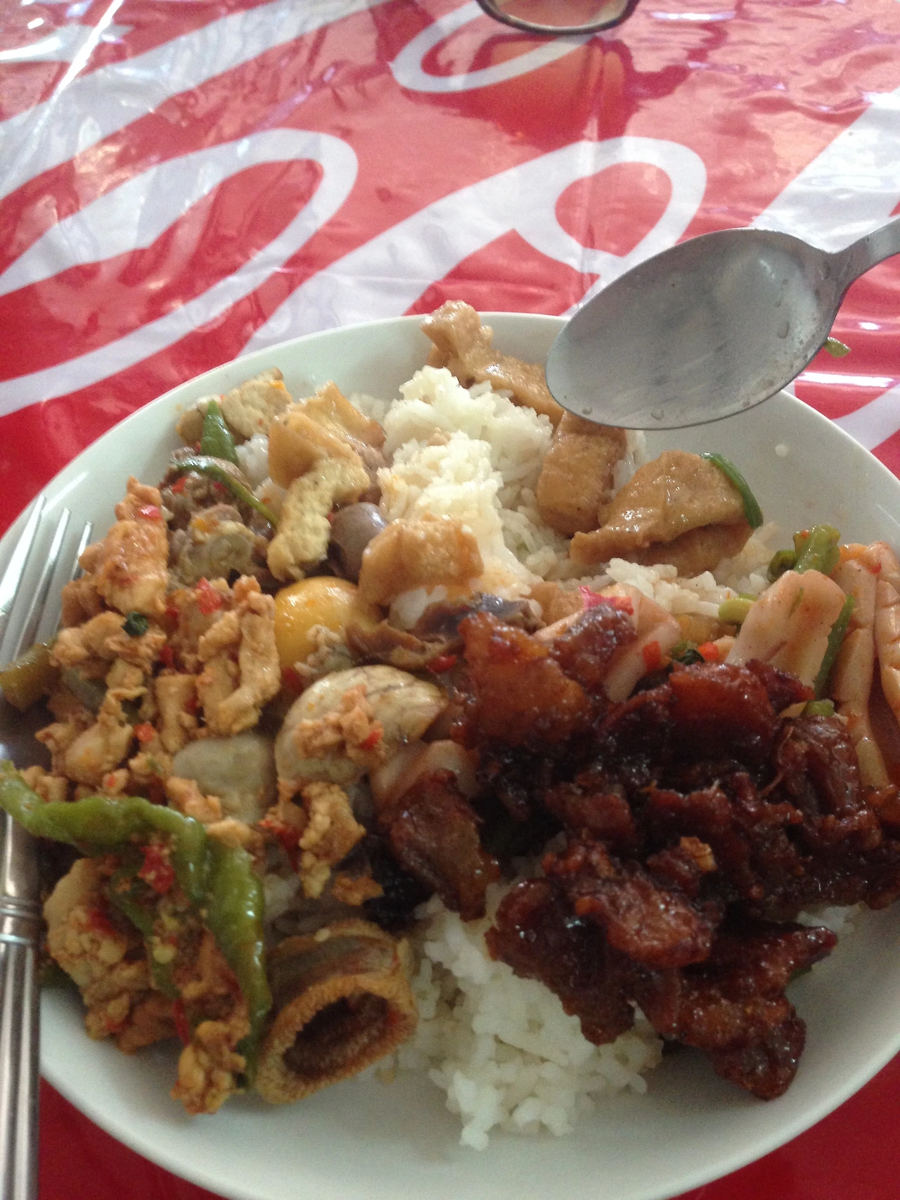 숙소에서 5분 거리에 위치한, 타이 식당을 발견했어요. 검색해 봤는데, 이 식당은 지금은 더 이상 존재하지 않아요. 뷔페식이어서, 이것저것 다 먹어야겠다고 생각했네요. 어쩌면 위앙짠에서의 마지막 저녁이 될 테니까요.
