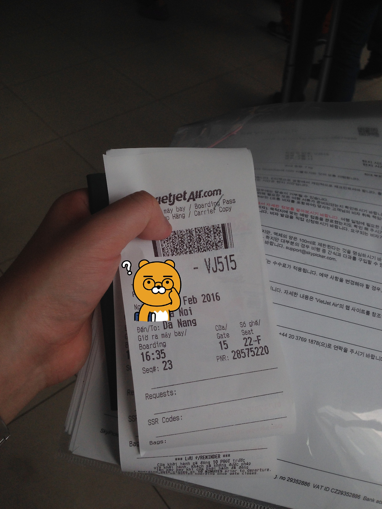 뒤편에 보이는 폴더 안의 종이가 미리 출력해 온 이 티켓(E-ticket)이고 앞에 보이는 영수증이 국내선 티켓이 되겠네요. 요즘엔 흔히 보이는 지류티켓이지만, 이날 본 티켓은 무언가 신선한 느낌이었네요.
