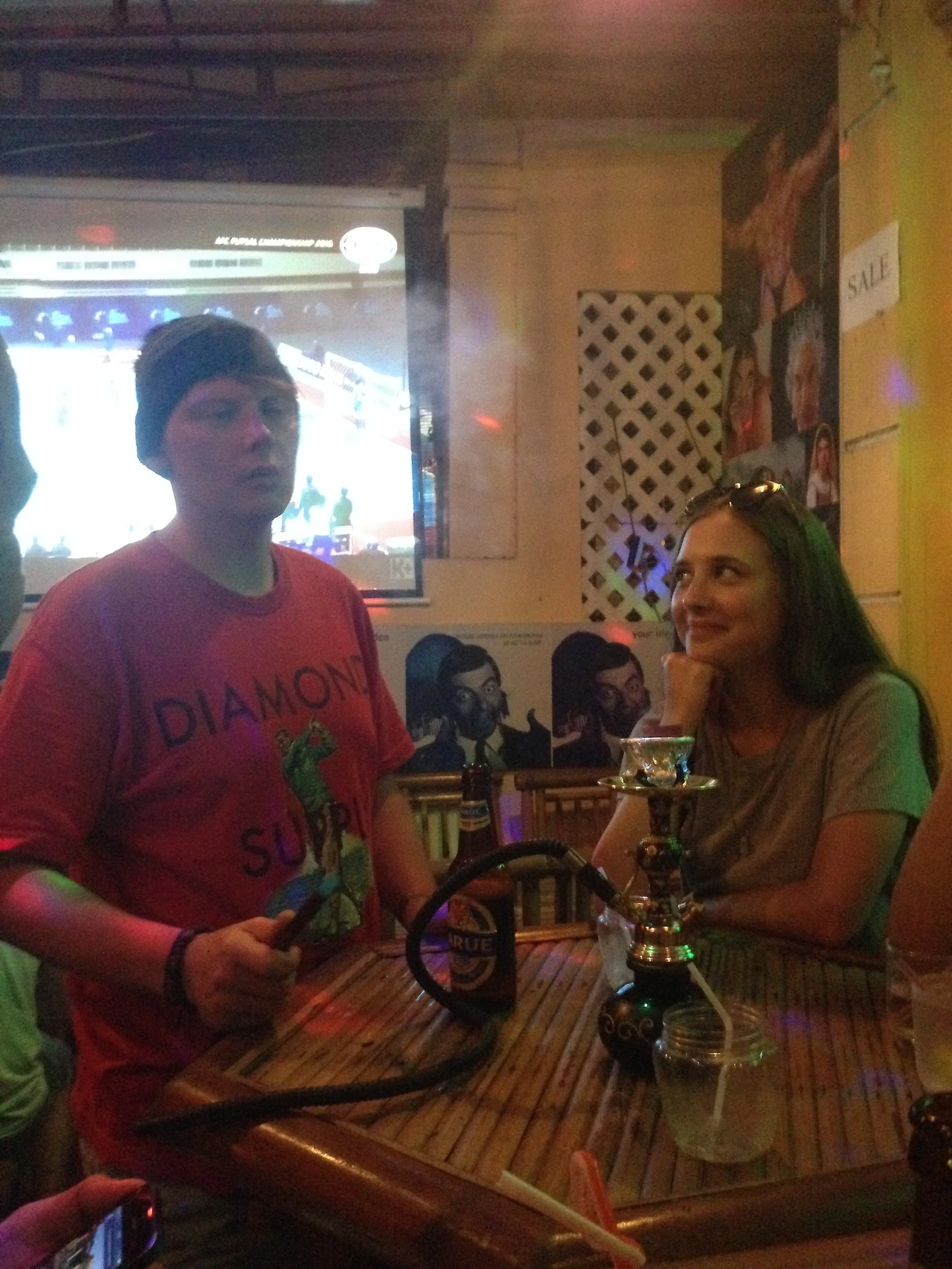 술이 몇 잔 들어가다 보니, 로버트가 로라와 제 앞에서 이집트의 시샤를 피는 모습을 보여줘요. 하하하하. 언어를 배우러 간 저였기에, 오래전 머물렀던 이집트에서, 아이러니하게도 시샤를 체험해보지 못하다 보니, 역으로 시샤를 피는 법을 배우게 된 순간이에요.