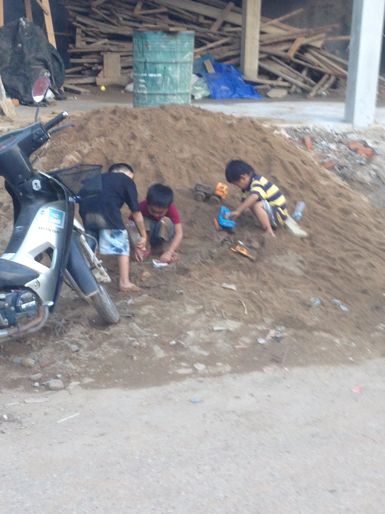 샤워하고 세상에서 가장 느린 걸음으로 저녁을 먹으러 가는 길에, 짓다 만 건물 아래 아이들이 한데 모여 신나게 흙 놀이를 하고 있어요. 맞아요. 그러고 보면 저도 어릴 때 그랬던 것 같아요. 요즘엔 아이들이 흙 땅을 밟을 기회가 많지 않잖아요. 사실 저런 모습이 건강한 건데 말이죠.
